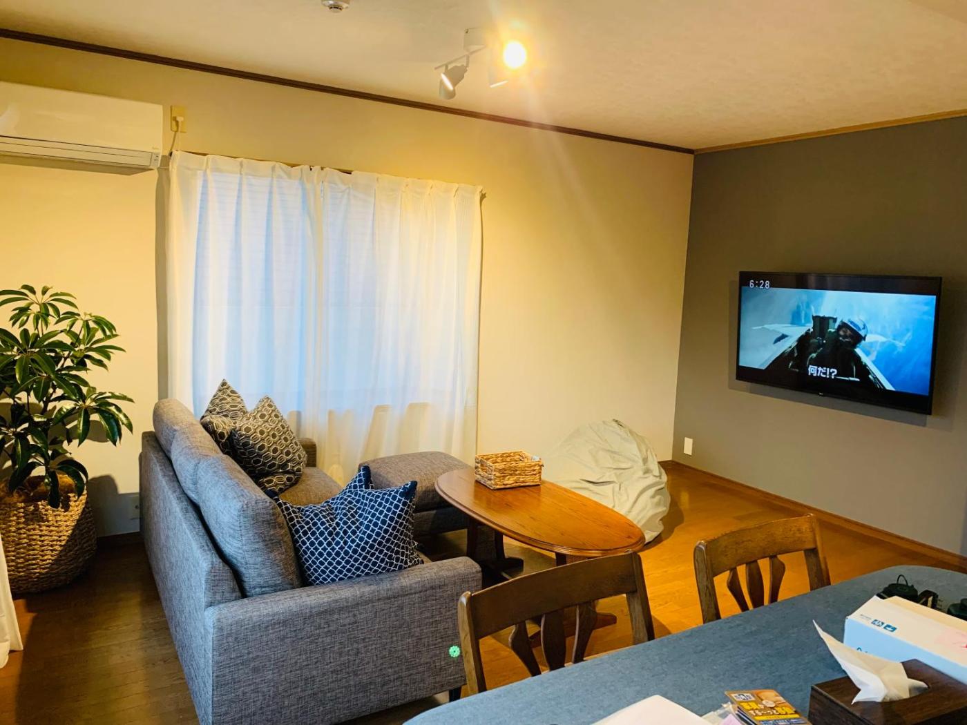 Three-Bedroom Villa. The air-conditioned villa features 3 bedrooms and 1 bathroom with a bath and a shower. In the well-equipped kitchen, guests will find a stovetop, a refrigerator, kitchenware and a microwave. Featuring a terrace with sea views, this villa also provides tatami and a flat-screen TV with streaming services. The unit offers 4 beds and 5 futons.