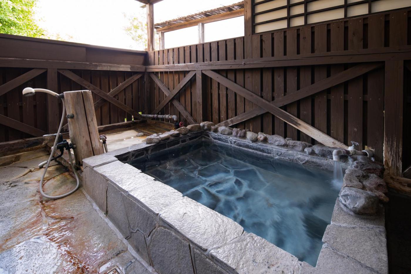 Double Room with Private Bathroom. The private open-air bath is a top feature of this double room. The double room features air conditioning, tatami, as well as a private bathroom boasting a bath and a shower. Featuring a balcony, this double room also provides an electric kettle, yukata and a flat-screen TV. The unit has 2 futons. ;