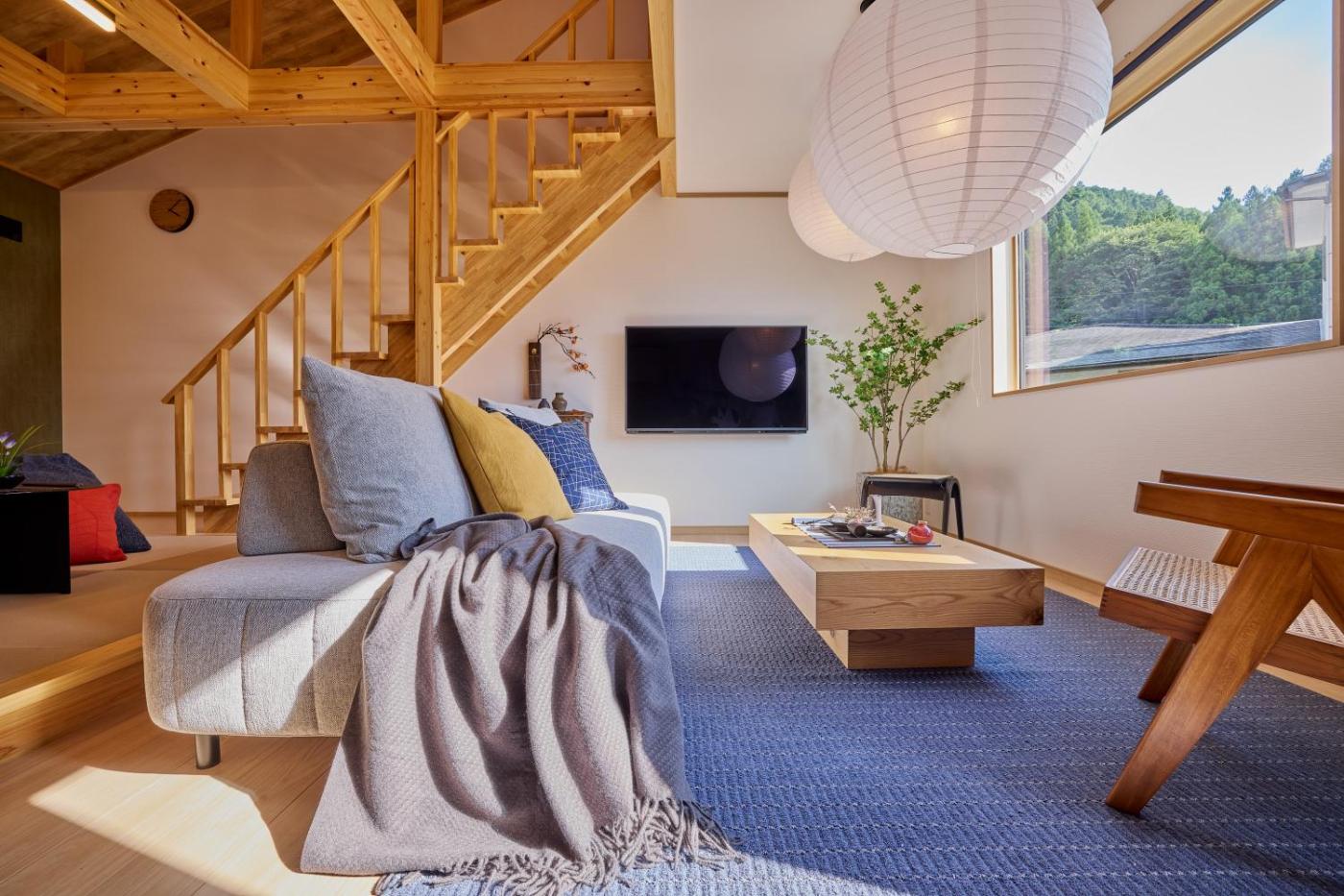 Three-Bedroom Villa. Boasting a private entrance, this air-conditioned villa features a kitchen, 3 bedrooms and 2 bathrooms with a bath and a shower. In the fully equipped kitchen, guests will find a stovetop, a refrigerator, kitchenware and a microwave. The villa features a washing machine, tatami, a tea and coffee maker, a dining area and a flat-screen TV with streaming services. The unit has 5 beds and 4 futons.