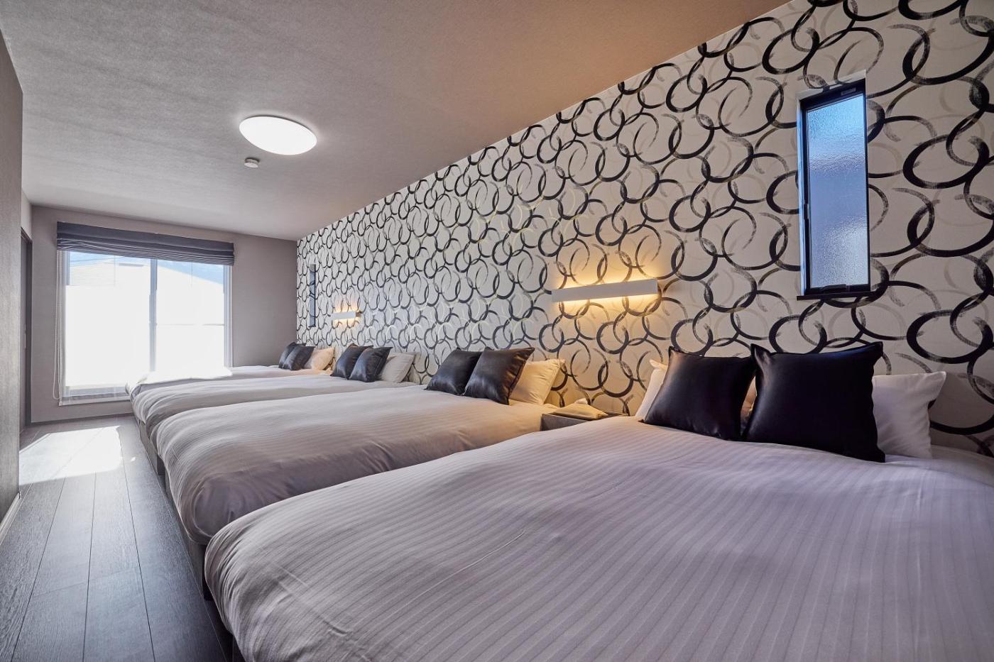 Three-Bedroom Villa. This villas standout feature is the sauna. Featuring a private entrance, this air-conditioned villa is comprised of 1 living room, 3 separate bedrooms and 2 bathrooms with a bath and a shower. In the well-equipped kitchen, guests will find a stovetop, a refrigerator, kitchenware and a microwave. The villa offers a washing machine, tatami, soundproof walls, a flat-screen TV with streaming services, as well as mountain views. The unit offers 6 beds and 2 futons.