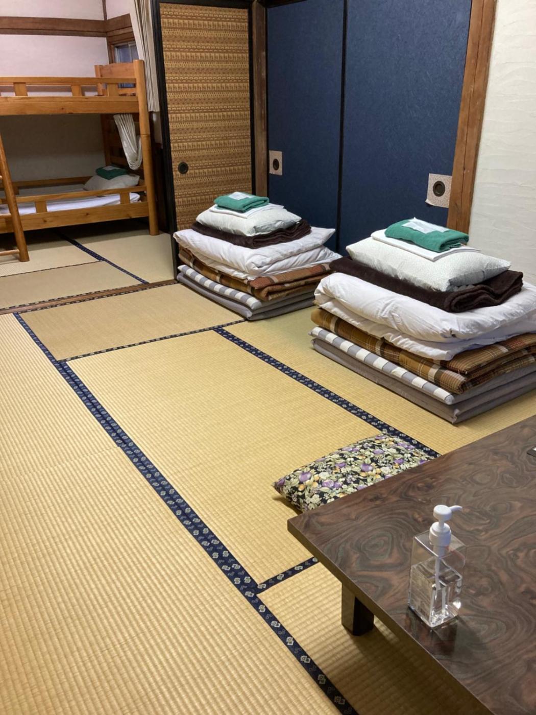 Japanese-Style Standard Room with Shared Bathroom. Providing free toiletries, this triple room includes a shared bathroom with slippers. The triple room is furnished with a desk and a seating area and provides air conditioning, tatami and a quiet street view. The unit offers 3 futons. ;
