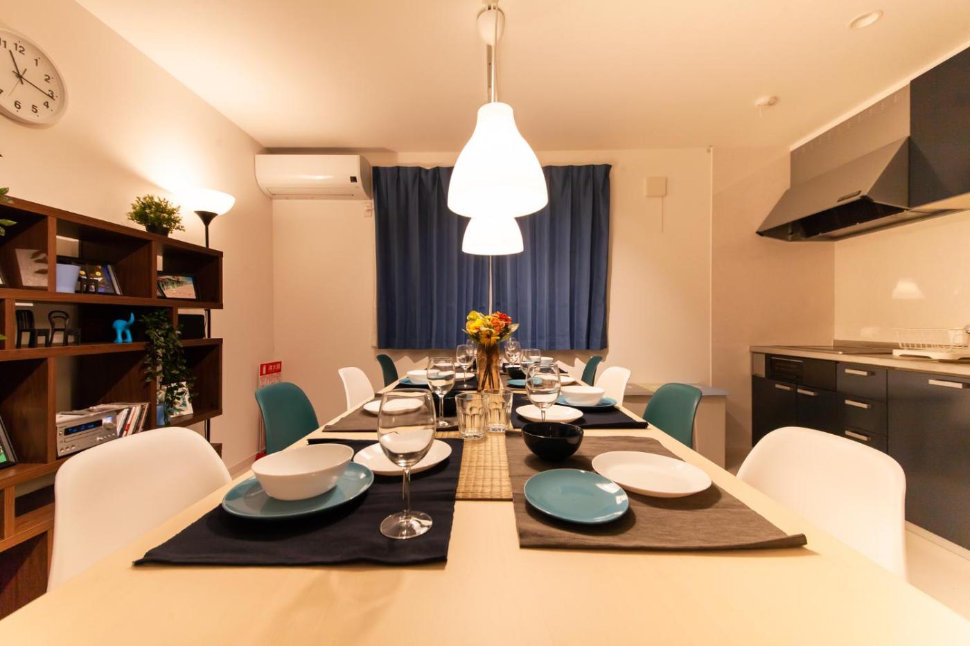 Three-Bedroom House. This air-conditioned holiday home includes 1 living room, 3 separate bedrooms and 1 bathroom with a bath. In the well-equipped kitchen, guests will find a stovetop, a refrigerator, kitchenware and a microwave. This holiday home has a washing machine, tatami, a flat-screen TV and a terrace. The unit has 5 beds and 3 futons.