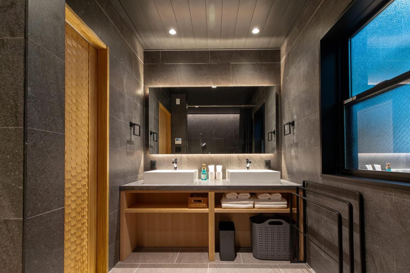 Three-Bedroom Villa. Boasting a private entrance, this air-conditioned villa includes a kitchen, 2 bedrooms and 1 bathroom with a bath and a shower. In the kitchen, guests will find a stovetop, a refrigerator, kitchenware and a microwave. The villa offers a washing machine, tatami, soundproof walls, a flat-screen TV, as well as ancourtyard view. The unit has 10 futons.