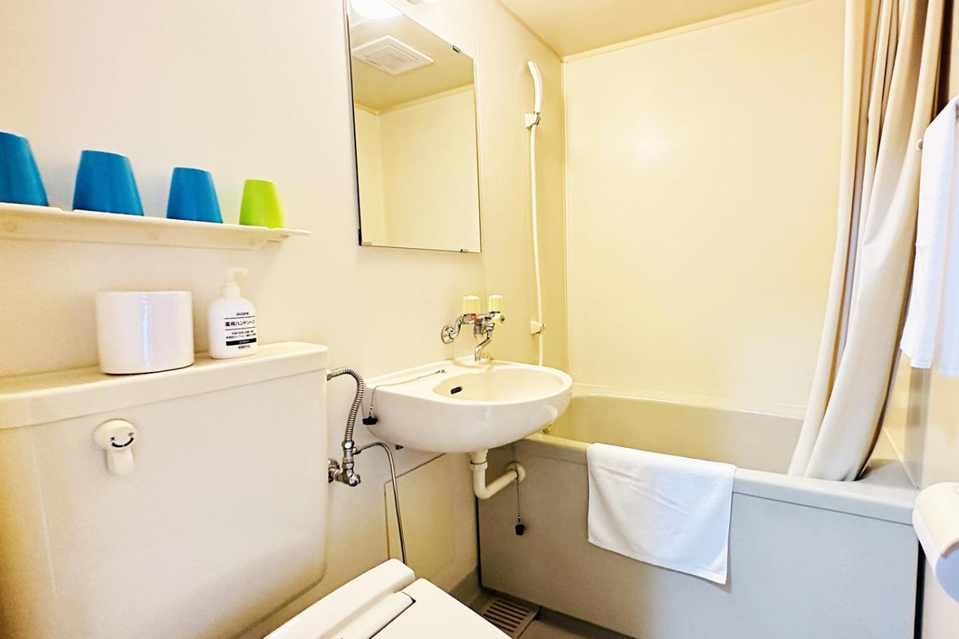 Japanese-Style Room. Offering free toiletries, this family room includes a shared bathroom with a hairdryer and slippers. This family room features a tea and coffee maker, a dining area and a flat-screen TV. The unit offers 3 futons. ;