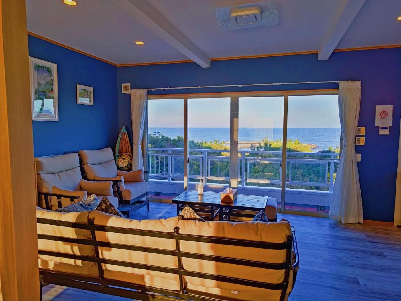 Three-Bedroom Villa. Guests will have a special experience as the villa features a hot tub. Featuring a private entrance, this air-conditioned villa consists of 1 living room, 3 separate bedrooms and 1 bathroom with a shower and a hairdryer. Guests will find a stovetop, a refrigerator, kitchenware and an oven in the kitchen. The villa also offers a barbecue. The villa provides a washing machine, tatami, a tea and coffee maker, a flat-screen TV with streaming services, as well as sea views. The unit offers 3 beds and 6 futons.