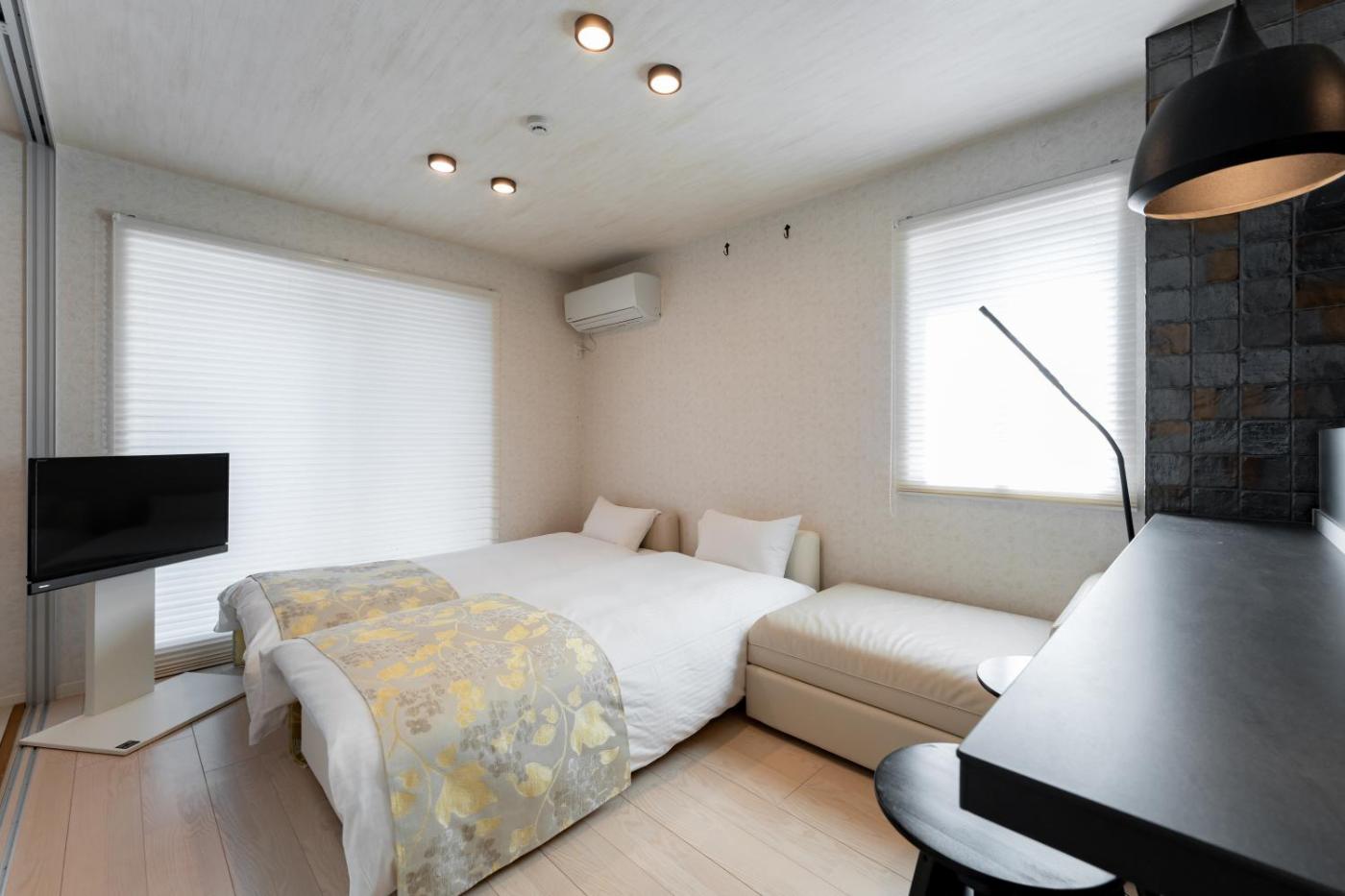 One-Bedroom Apartment. This apartment features 1 living room, 1 separate bedroom and 1 bathroom with a bath and free toiletries. In the fully equipped kitchen, guests will find a stovetop, a refrigerator, kitchenware and a microwave. The apartment features air conditioning, a washing machine, a tea and coffee maker, a dining area, as well as a flat-screen TV. The unit has 2 beds and 2 futons.