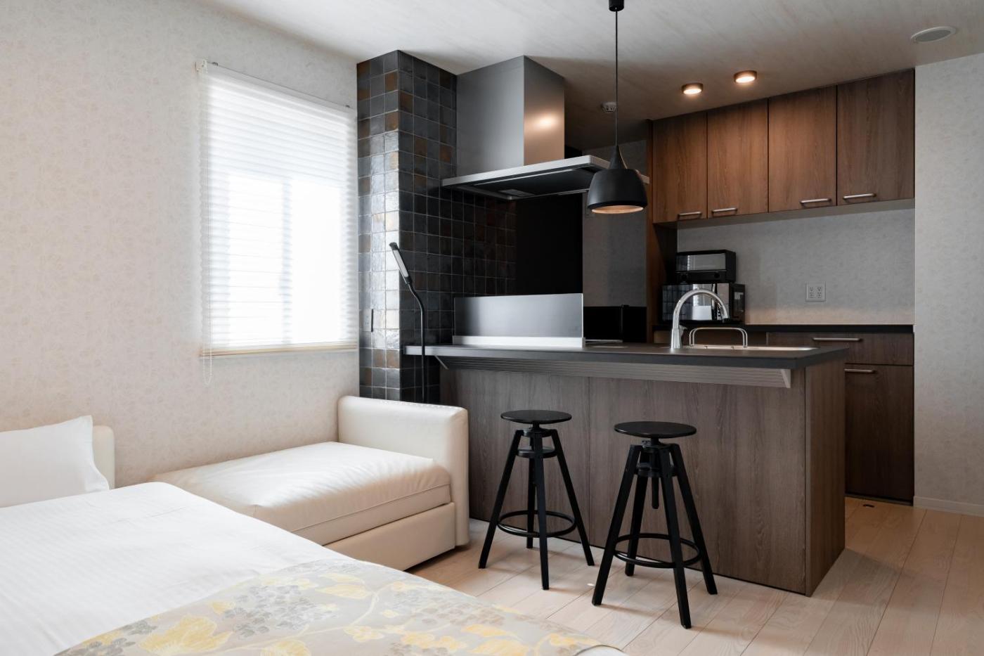 One-Bedroom Apartment. This apartment comprises 1 living room, 1 separate bedroom and 1 bathroom with a bath and free toiletries. In the kitchen, guests will find a stovetop, a refrigerator and a microwave. This apartment is air-conditioned and features a flat-screen TV, a washing machine, a tea and coffee maker and a dining area. The unit offers 2 beds and 2 futons.