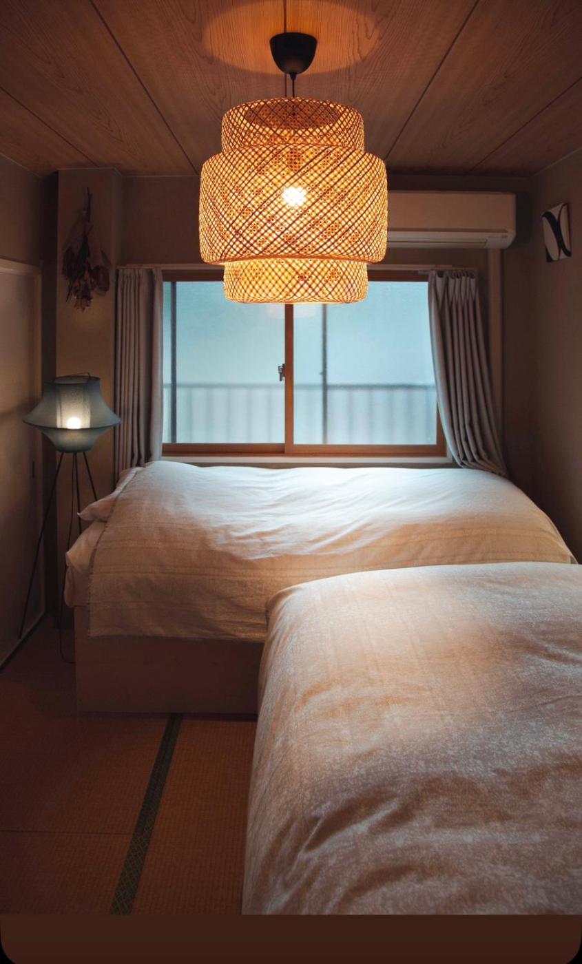 Two-Bedroom Apartment. The air-conditioned apartment features 2 bedrooms and 1 bathroom with a bath or a shower and a hairdryer. In the well-equipped kitchenette, guests will find a stovetop, a refrigerator, kitchenware and a microwave. The apartment is equipped with a flat-screen TV, a washing machine, tatami, as well as a tea and coffee maker. The unit offers 3 beds and 1 futon. ;