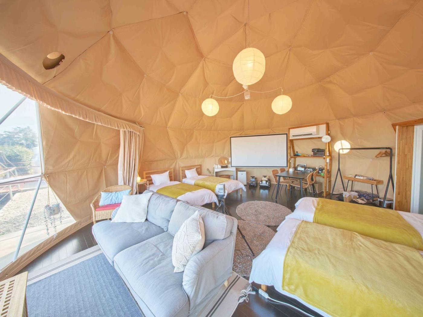 Located within 27 km of Shuzen-ji Temple and 42 km of Mount Daruma, 伊豆Cocoグランピングリゾート provides rooms with air conditioning and a private bathroom in Ito. This property offers access to a terrace and free private parking. Every room is fitted with a balcony with views of the sea.