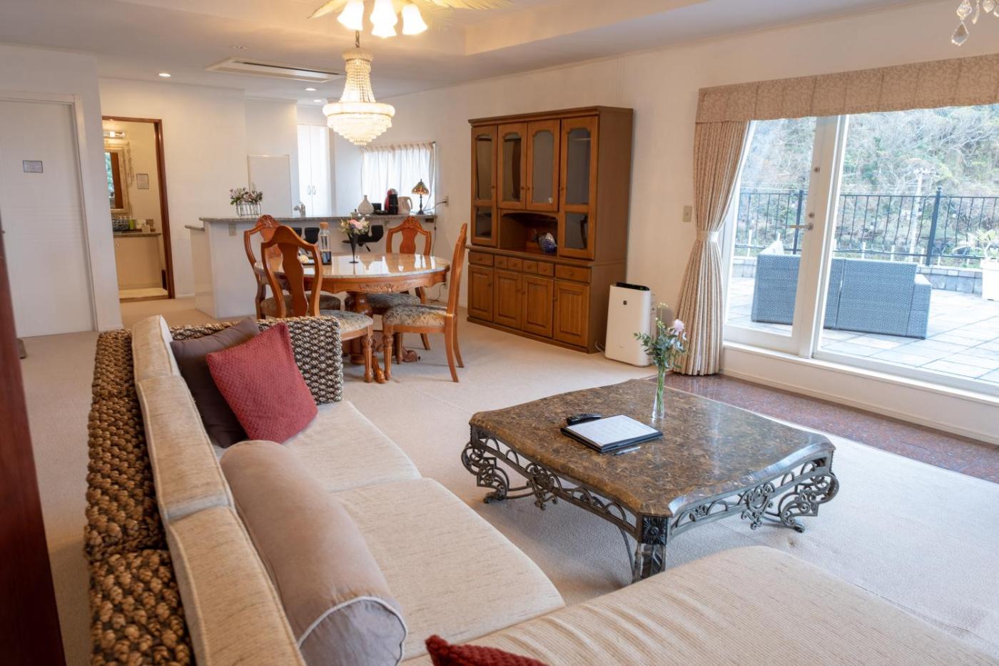 Suite with Ocean View and Semi Open-Air Bath. Guests will have a special experience as the suite features a private open-air bath. This spacious suite consists of 1 living room, 1 separate bedroom and 1 bathroom with a bath and free toiletries. Featuring a terrace with sea views, this suite also provides air conditioning and a flat-screen TV. The unit offers 1 bed. ;