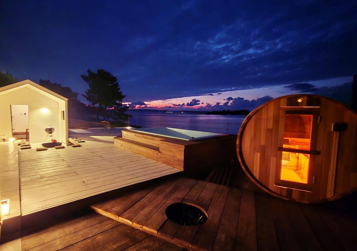 (Kubikai THALASSO) 4 Double Bed Rooms - Non-Smoking. This family rooms special feature is the sauna. Guests will find a refrigerator, a dishwasher, kitchenware and a microwave in the fully equipped kitchen. The family room also offers a barbecue. The spacious family room provides air conditioning, a dining area, as well as a private bathroom featuring a bath and a shower. The unit offers 4 beds.