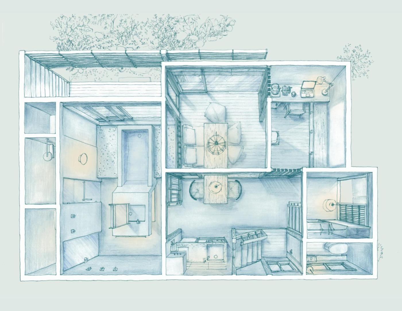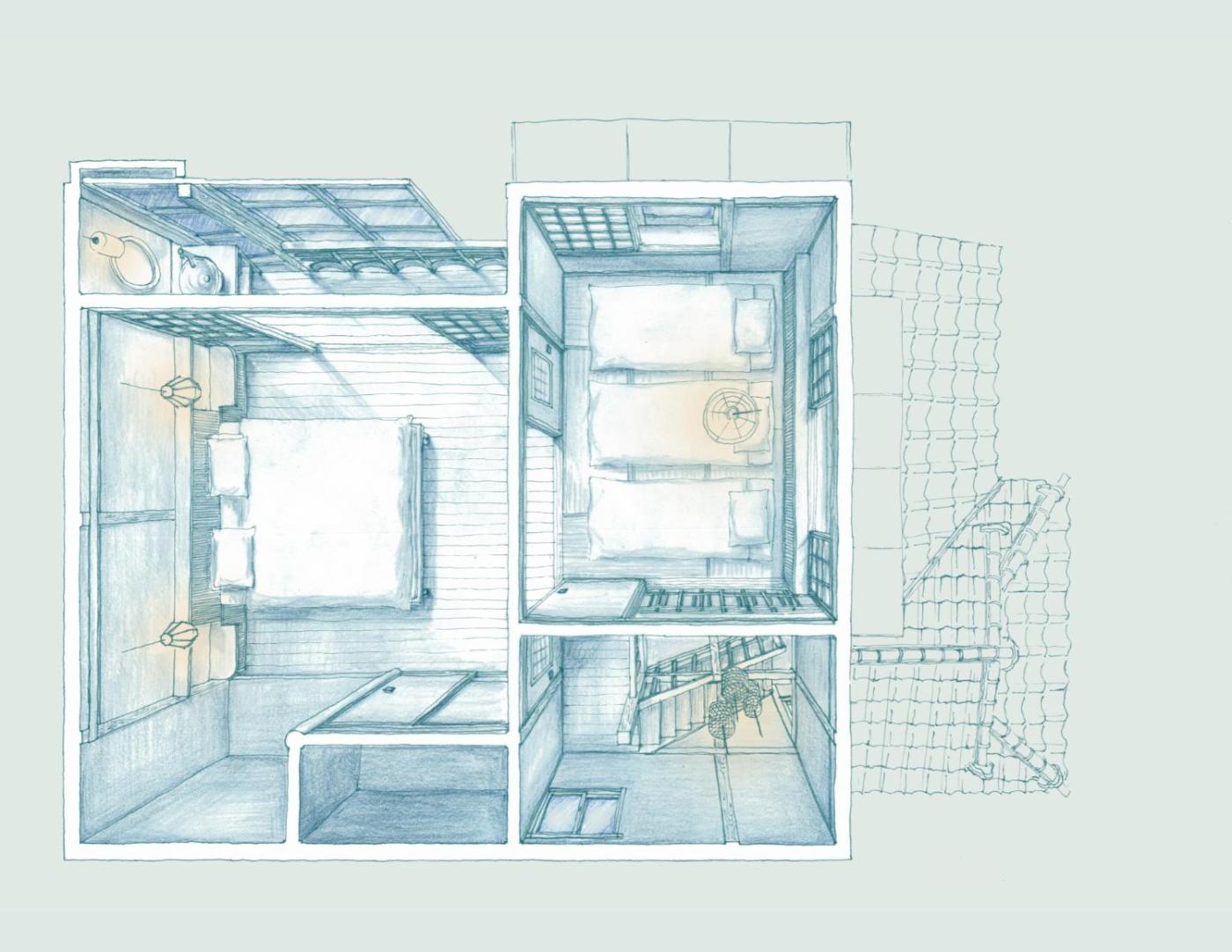 Two-Bedroom House. This holiday homes standout feature is the hot tub. Boasting a private entrance, this air-conditioned holiday home includes 1 living room, 2 separate bedrooms and 1 bathroom with a bath and a shower. Guests can make meals in the kitchen that has a stovetop, a refrigerator, kitchenware and an oven. The holiday home offers a washing machine, tatami, a tea and coffee maker, a TV with streaming services, as well as garden views. The unit has 1 bed and 3 futons.