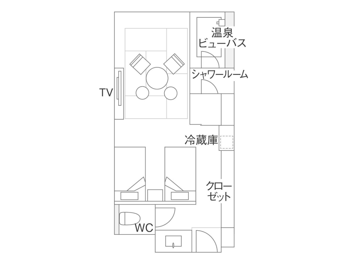 Twin Room wOpen Air Bath, Guest room, North Wing. This double rooms special feature is the private open-air bath. The spacious double room provides air conditioning, a tea and coffee maker, as well as a private bathroom featuring a bath and a shower. The double room features a flat-screen TV with satellite channels, a safe deposit box, yukata and heating. The unit offers 1 bed. ;