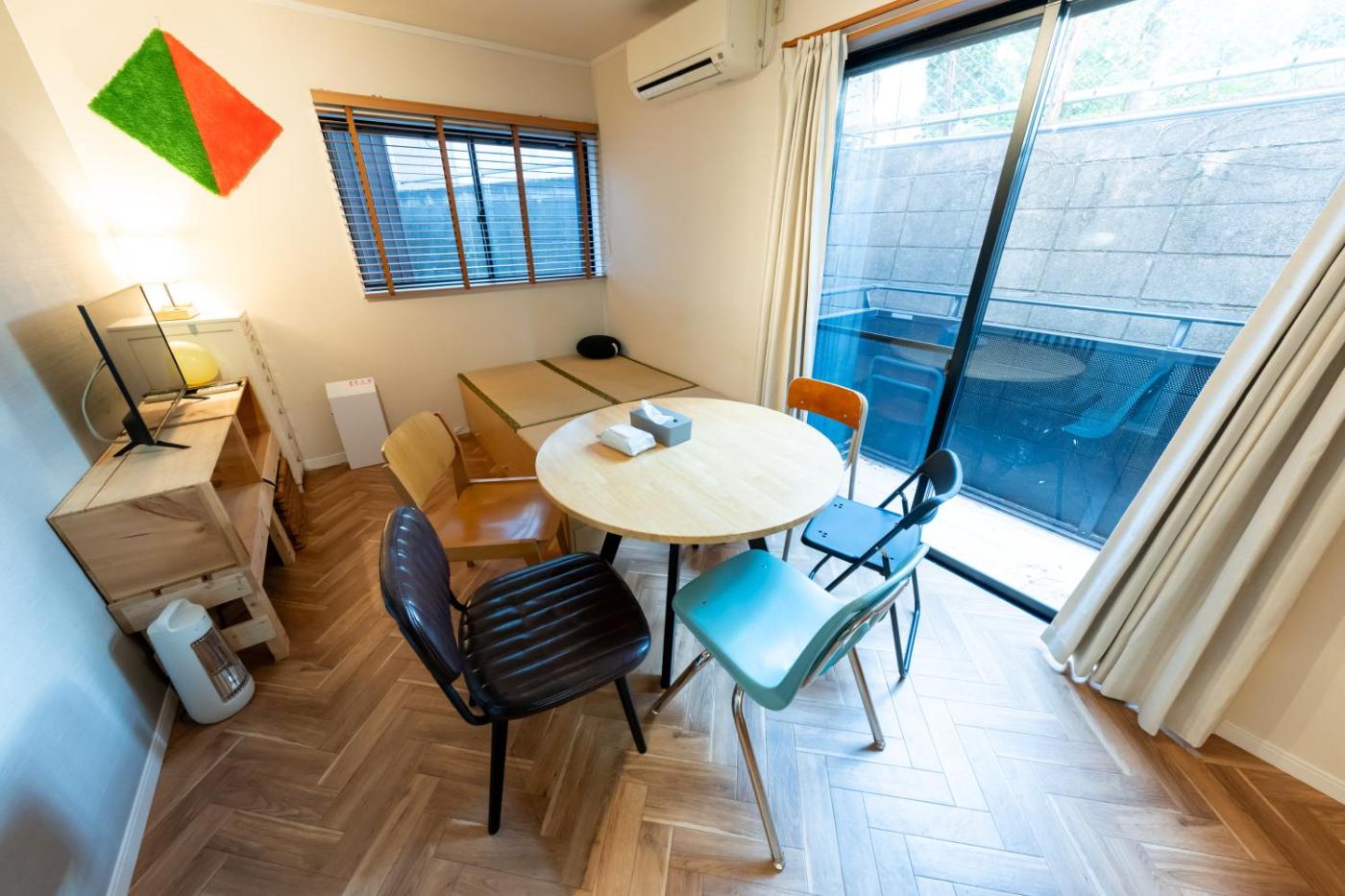 Two-Bedroom Apartment with Balcony. Featuring a private entrance, this air-conditioned apartment is comprised of 1 living room, 2 separate bedrooms and 1 bathroom with a bath and a shower. In the fully equipped kitchen, guests will find a stovetop, a refrigerator, kitchenware and an oven. The spacious apartment offers a washing machine, tatami, a tea and coffee maker, a dining area, as well as a flat-screen TV with streaming services. The unit offers 5 beds.