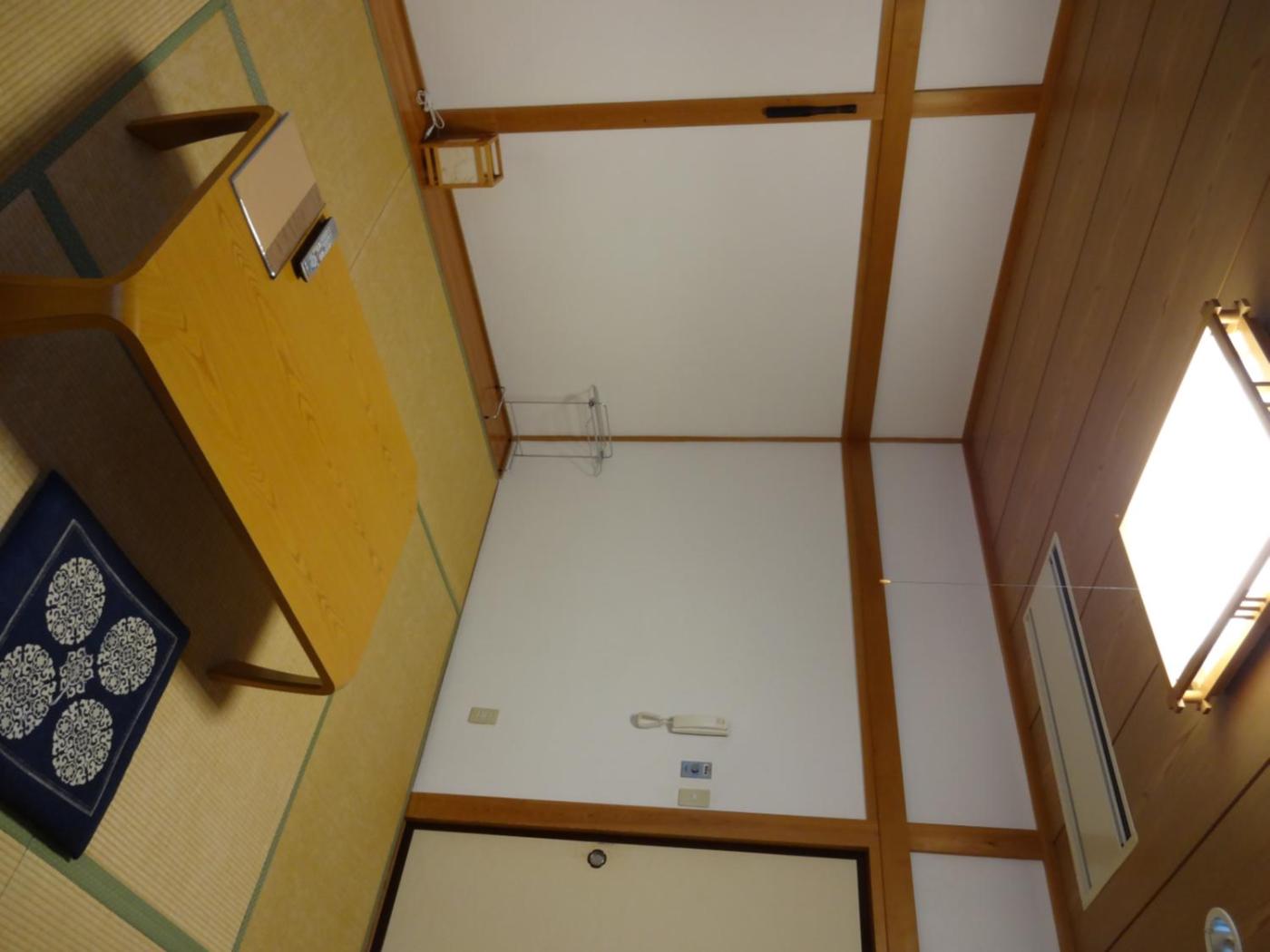 Japanese-Style Room with Shared Bathroom. Fitted with tatami (woven-straw) flooring and traditional futon bedding, each room comes with a TV, a telephone and a private toilet. A low table and seating cushions are also included. Bathroom is shared with other guests.