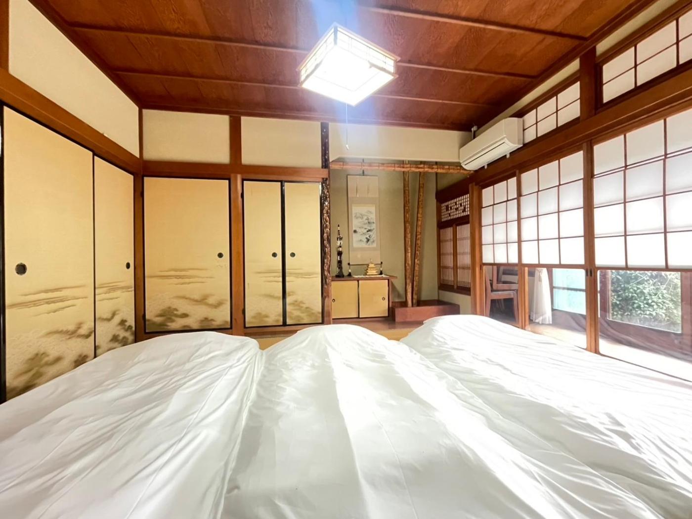 Villa. Featuring a private entrance, this air-conditioned villa is comprised of 1 living room, 4 separate bedrooms and 1 bathroom with a bath and a shower. Guests will find a stovetop, a refrigerator, an oven and a microwave in the well-equipped kitchen. The villa also has a barbecue. The spacious villa offers a washing machine, tatami, soundproof walls, a flat-screen TV with streaming services, as well as garden views. The unit offers 3 beds and 4 futons.