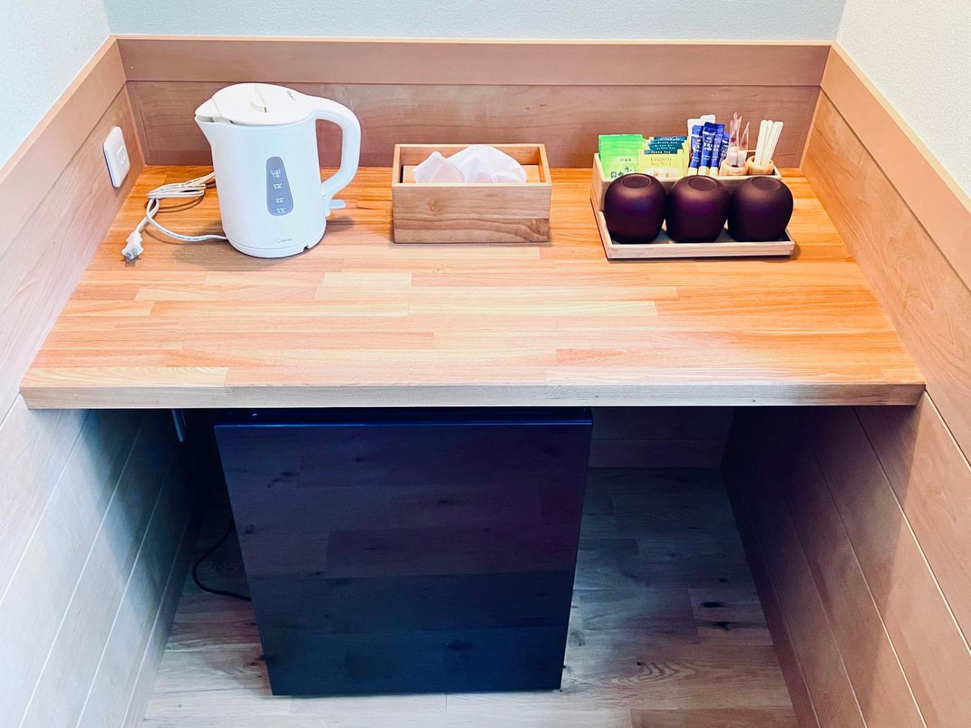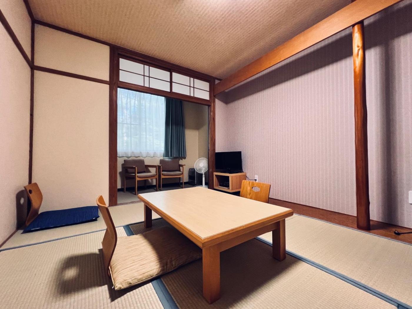 Japanese-Style Room. Featuring free toiletries, this family room includes a shared bathroom with slippers. This family room features a tea and coffee maker, a flat-screen TV and mountain views. The unit has 3 futons.