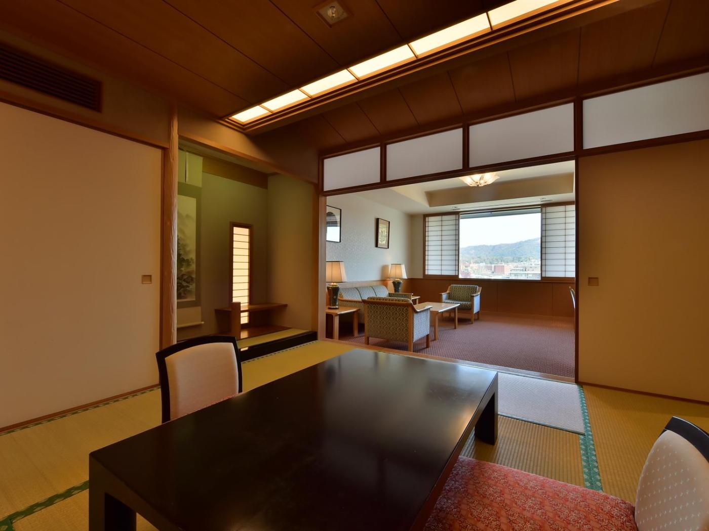 Carpeted rooms feature Western-style beds, while guests in Japanese-style rooms sleep in traditional futon bedding on the tatami (woven-straw) floor.rooms are fitted with a television, a mini-fridge, a seating area and yukata robes.