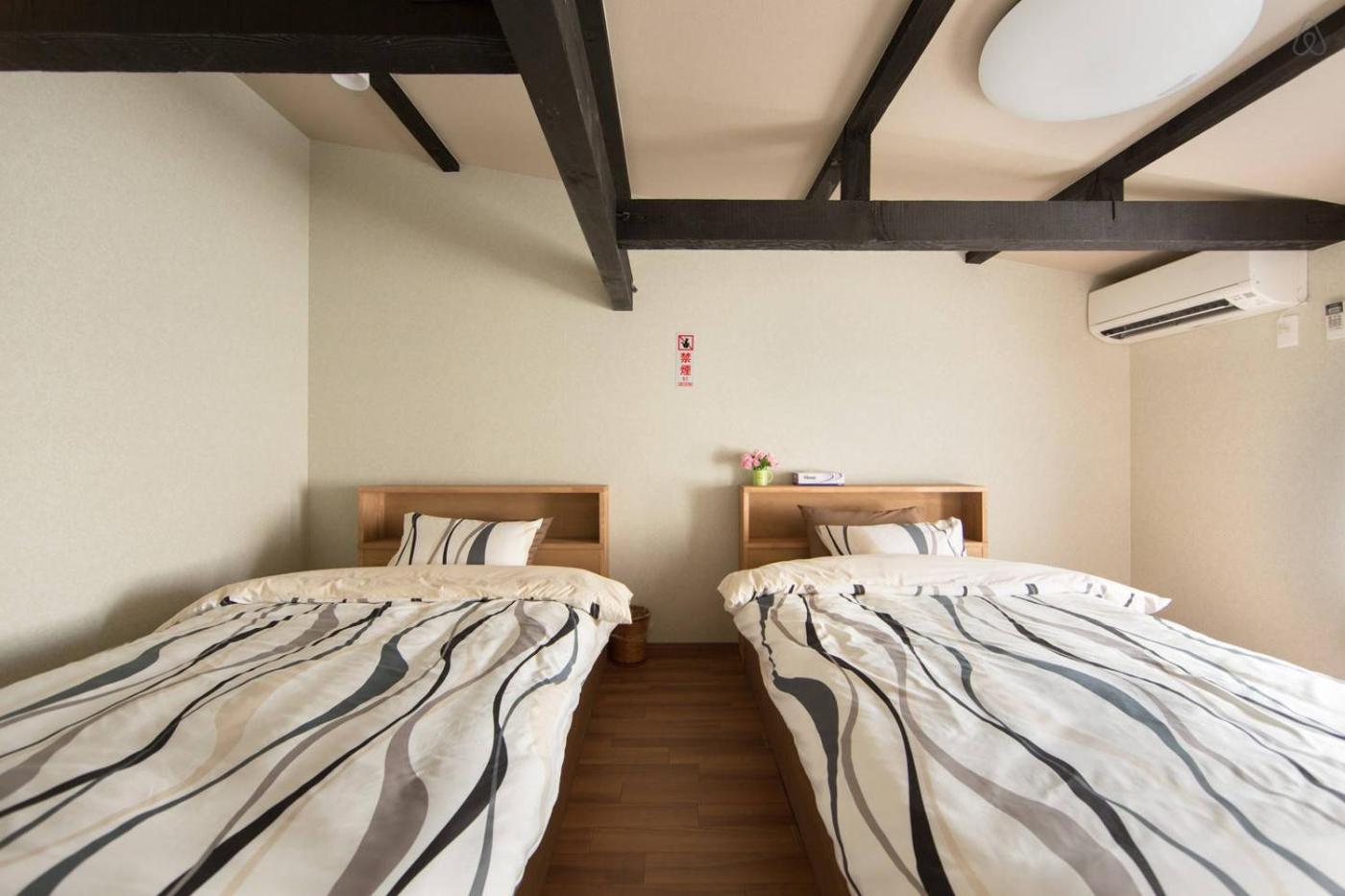 Japanese-Style Townhouse. The spacious twin room features air conditioning, tatami, as well as a private bathroom boasting a shower and a hairdryer. The well-equipped kitchen has a refrigerator, kitchenware and a microwave. This twin room features a sofa, heating and a flat-screen TV. The unit has 2 beds.
