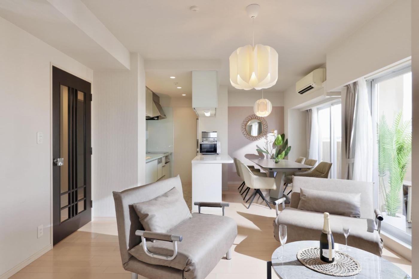 Japanese-Style room Superior Sea View. Providing free toiletries, this family room includes a private bathroom with a bath, a shower and a hairdryer. The fully equipped kitchen features a stovetop, a refrigerator, kitchenware and a microwave. The spacious air-conditioned family room provides a TV, a washing machine, tatami, a dining area as well as sea views. The unit offers 4 beds and 2 futons. ;