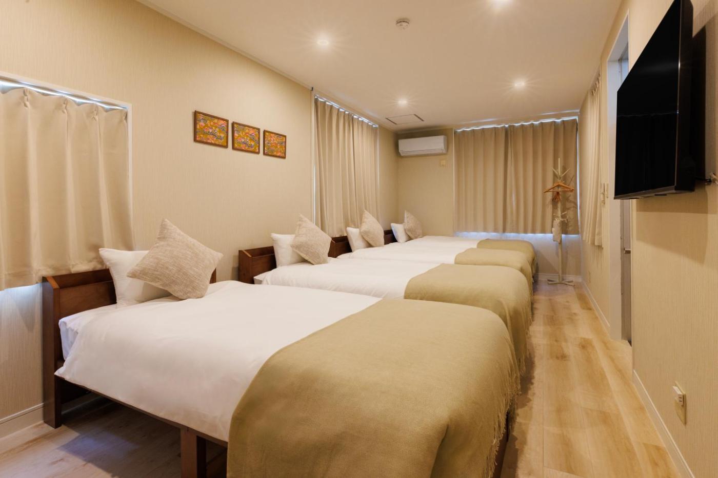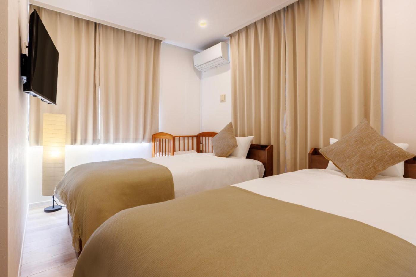 Two-Bedroom Apartment. Boasting a private entrance, this air-conditioned apartment includes 1 living room, 2 separate bedrooms and 1 bathroom with a shower and a bidet. Guests will find a stovetop, a refrigerator, kitchenware and a microwave in the kitchen. The apartment also features a barbecue. The spacious apartment offers a washing machine, tatami, a coffee machine, a flat-screen TV, as well as sea views. The unit has 6 beds and 1 futon.