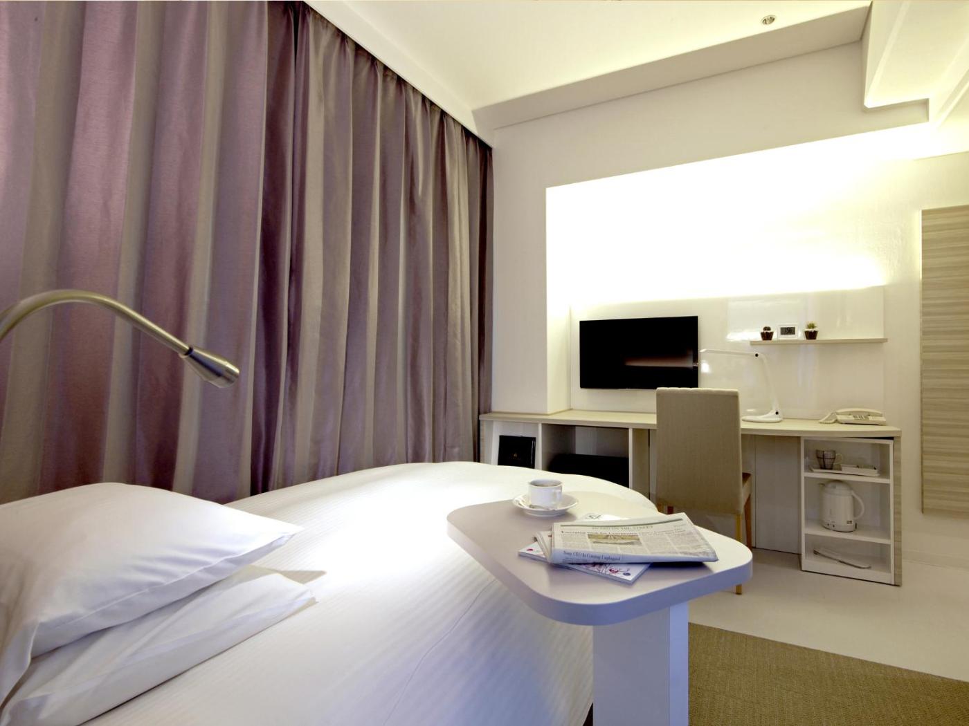 Single Room - Non-Smoking - Main Building. Air-conditioned room decorated in bright colours, fitted with a flat-screen TV, a radio and a fridge. The en suite bathroom comes with a shower, bathtub and toiletries. Includes free WiFi access. Rooms feature a small double bed 120 cm wide. Please note this room cannot accommodate an extra bed. ;