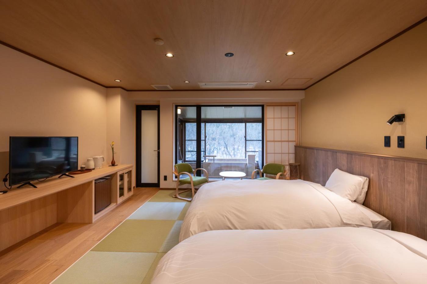Twin Room with Private Bathroom. The twin room includes a private bathroom, well-fitted with a bath, a shower, a bidet, a hairdryer and slippers. The air-conditioned twin room provides a flat-screen TV with satellite channels, tatami, a tea and coffee maker, a wardrobe as well as mountain views. The unit offers 2 beds.