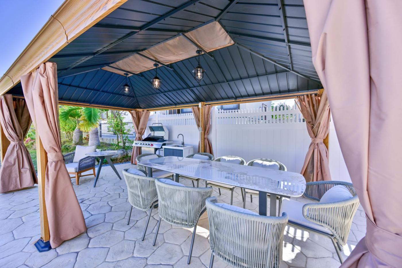 Villa. This luxurious villa features a pool with a view, a hot tub and a sauna. This spacious villa includes 1 living room, 4 separate bedrooms and 2 bathrooms with a bath and free toiletries. Guests will find a stovetop, a refrigerator, an oven and a microwave in the well-equipped kitchen. The villa also features a barbecue. The air-conditioned villa offers a flat-screen TV, a washing machine, tatami, a dining area as well as garden views. The unit has 9 beds.