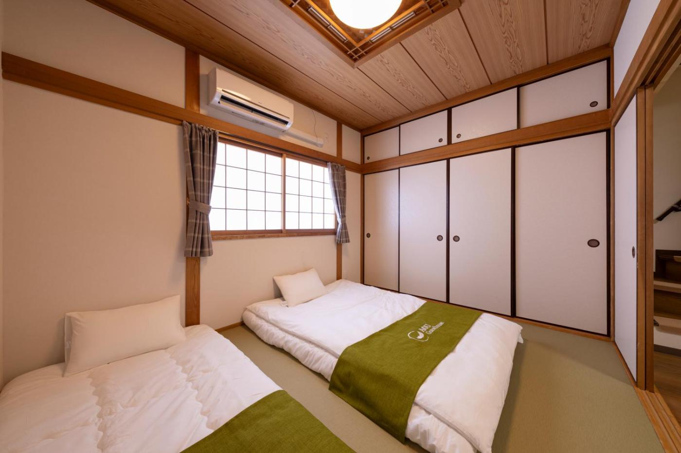 Five-Bedroom House. Boasting a private entrance, this air-conditioned holiday home includes a kitchen, 5 bedrooms and 3 bathrooms with a walk-in shower and a bidet. The holiday homes kitchen, which features a stovetop and a microwave, is available for cooking and storing food. This holiday home has a washing machine, tatami, a flat-screen TV and a balcony. The unit has 2 beds and 6 futons.