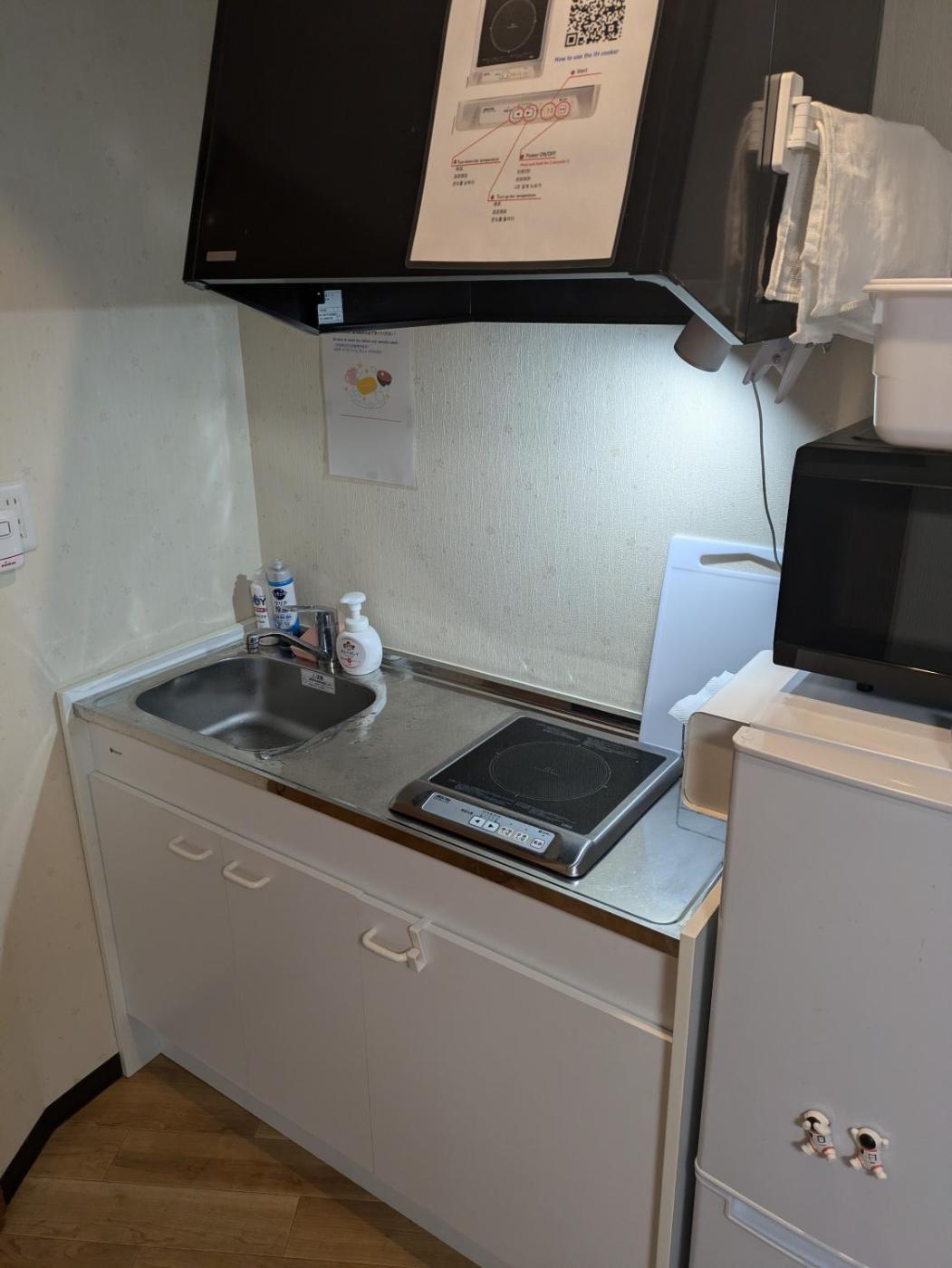 One-Bedroom Apartment. This apartment comes with 1 living room, 1 separate bedroom and 1 bathroom with a shower and free toiletries. Meals can be prepared in the well-fitted kitchen, which features a stovetop, a refrigerator, kitchenware and a microwave. The apartment has tatami floors and features air conditioning, a washing machine and a quiet street view. The unit has 4 futons.