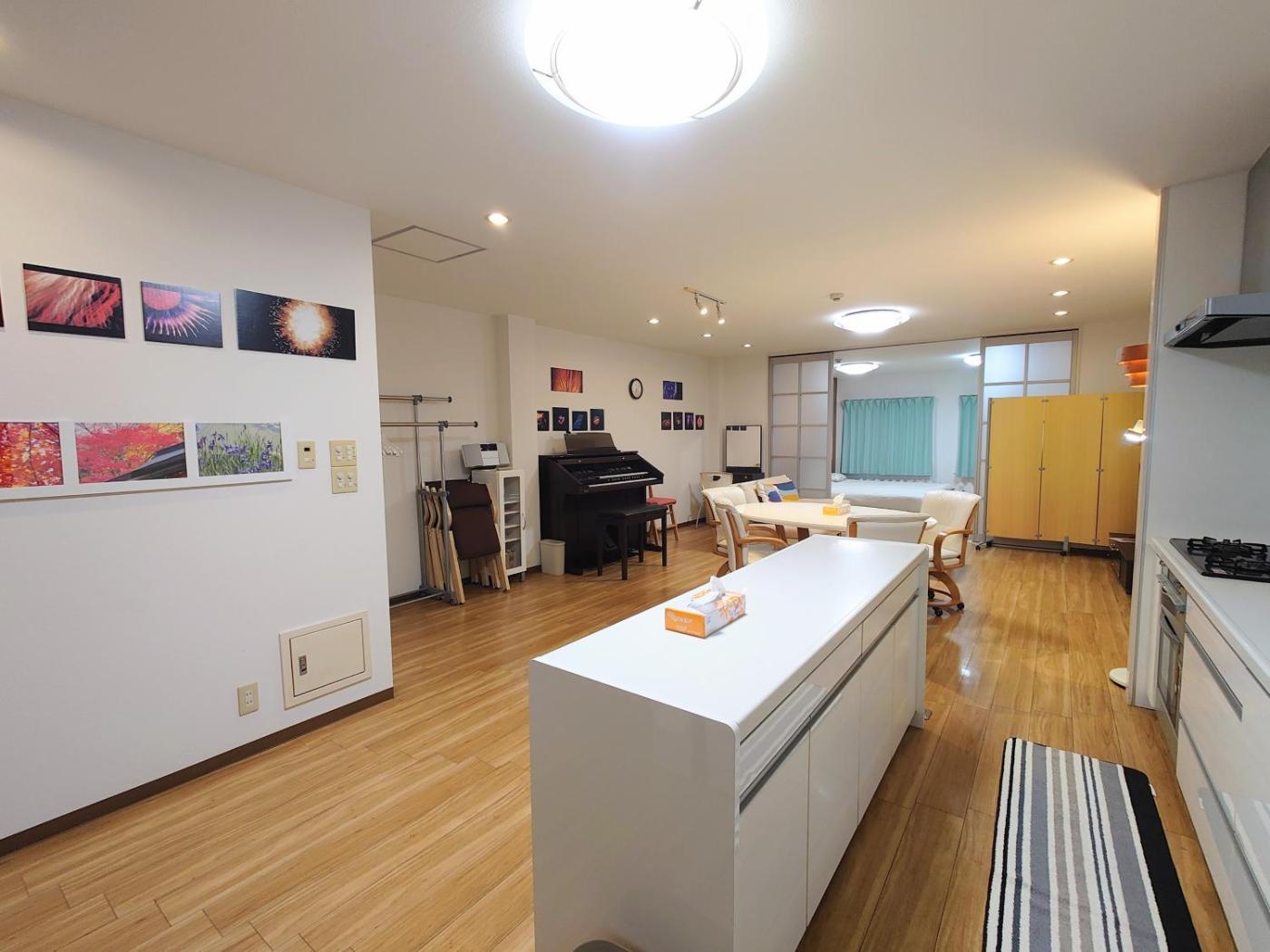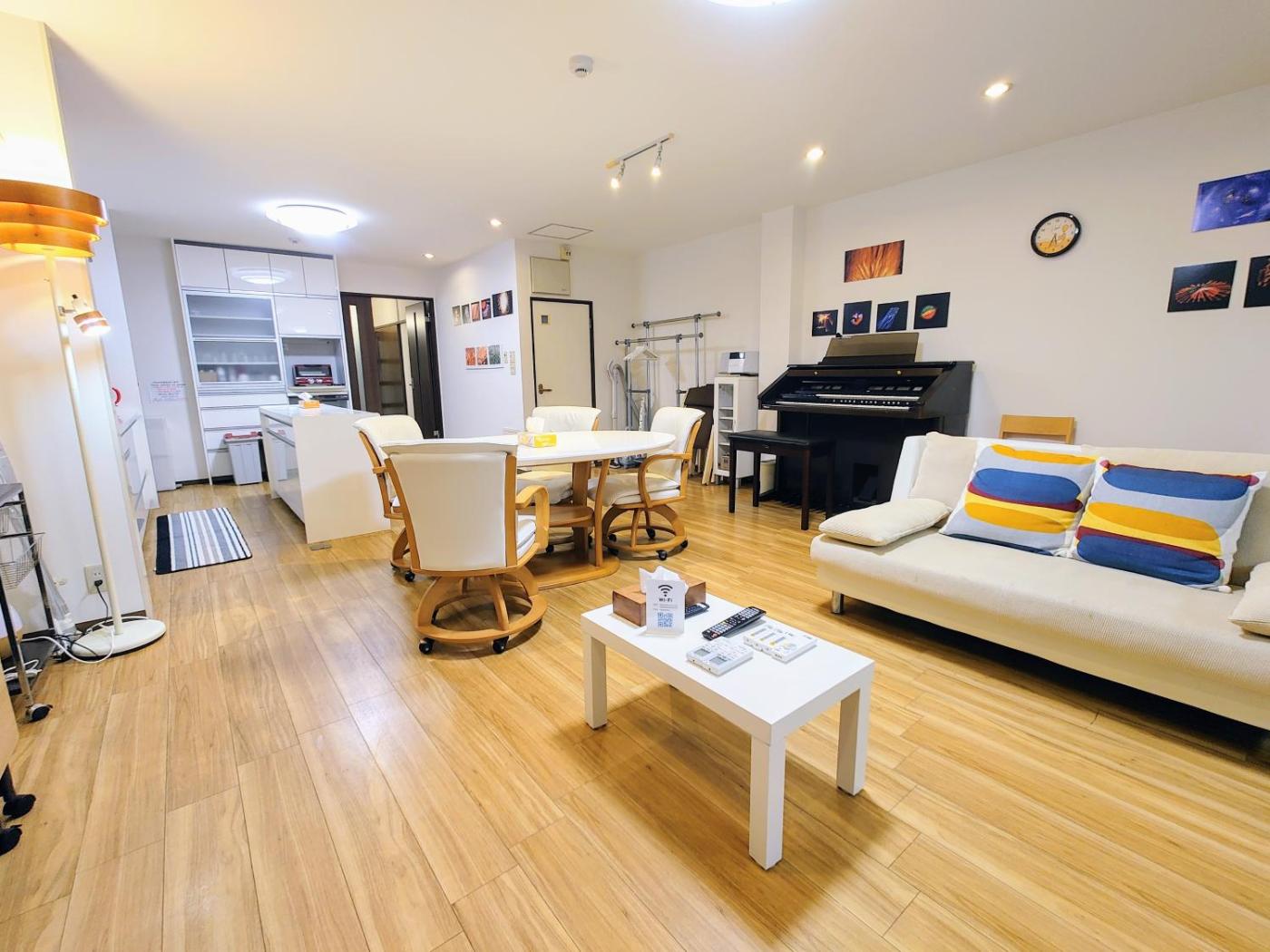 Family Room. The family room includes a private bathroom, well-fitted with a bath, a shower, a bidet, a hairdryer and slippers. The well-fitted kitchen has a stovetop, a refrigerator, kitchenware and an oven. The spacious air-conditioned family room offers a flat-screen TV with streaming services, a washing machine, tatami, a coffee machine as well as city views. The unit has 8 beds. ;