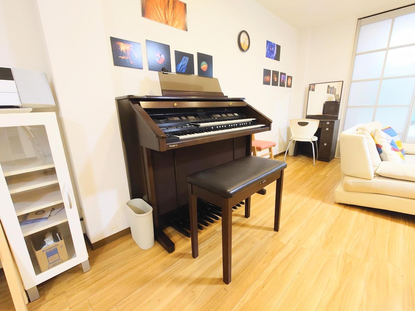 Family Room. The family room includes a private bathroom, well-fitted with a bath, a shower, a bidet, a hairdryer and slippers. Meals can be prepared in the kitchen, which features a stovetop, a refrigerator, kitchenware and an oven. The spacious air-conditioned family room features a flat-screen TV with streaming services, a washing machine, tatami, a coffee machine as well as city views. The unit has 8 futons.