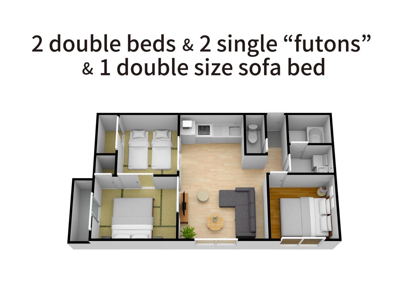 Three-Bedroom Apartment #02. This apartment features 1 living room, 3 separate bedrooms and 1 bathroom with a bath and free toiletries. The well-fitted kitchen has a stovetop, a refrigerator, kitchenware and a microwave. Boasting a balcony, this apartment also features air conditioning, a washing machine and a flat-screen TV. The unit has 3 beds and 3 futons. ;
