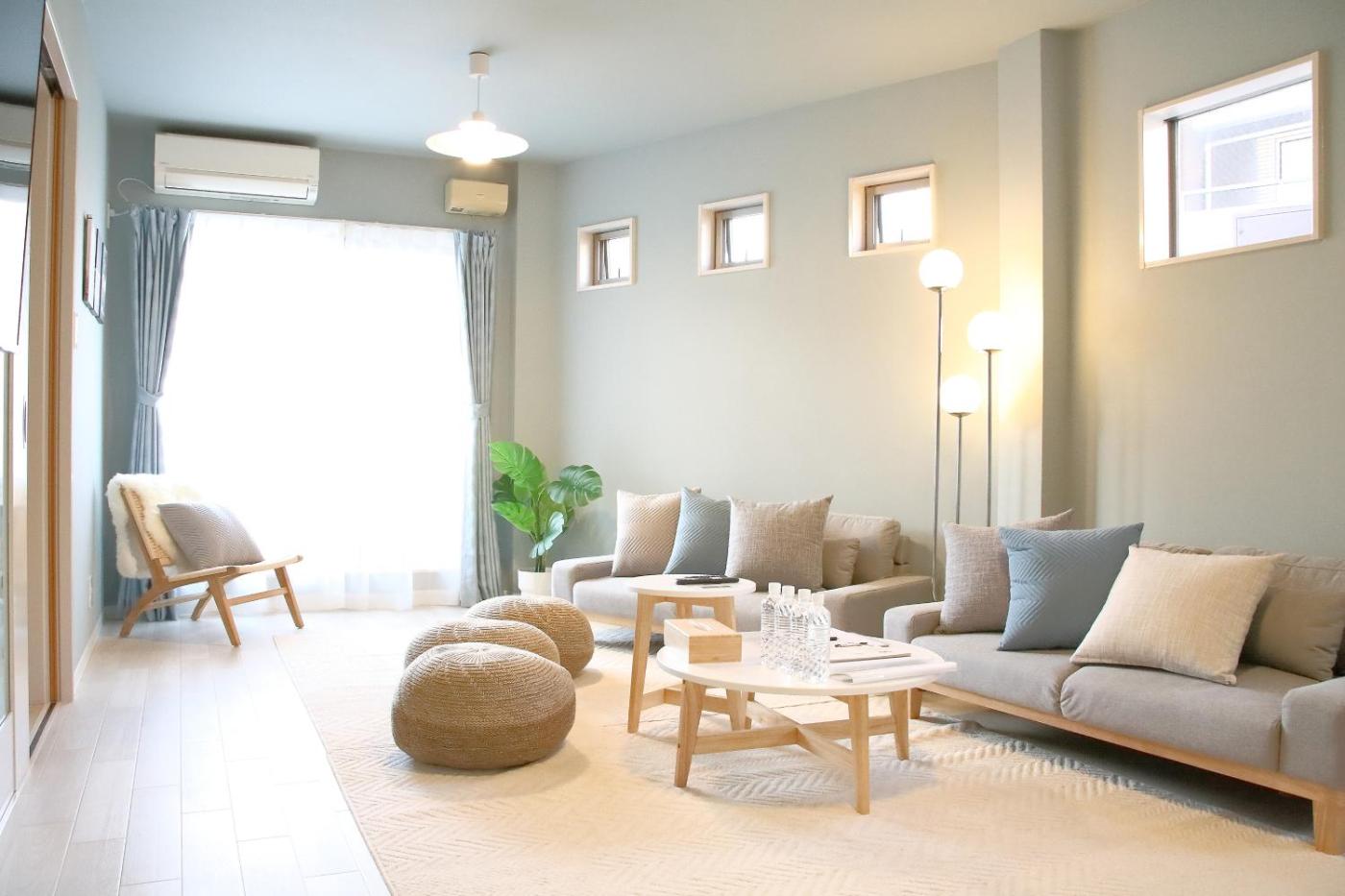 Three-Bedroom House. Boasting a private entrance, this spacious holiday home also features 3 separate bedrooms and 1 bathroom with a walk-in shower and a bath. In the well-equipped kitchen, guests will find a stovetop, a refrigerator, kitchenware and a microwave. The air-conditioned holiday home features a flat-screen TV with streaming services, a washing machine, tatami, a coffee machine as well as a quiet street view. The unit has 5 beds and 3 futons.