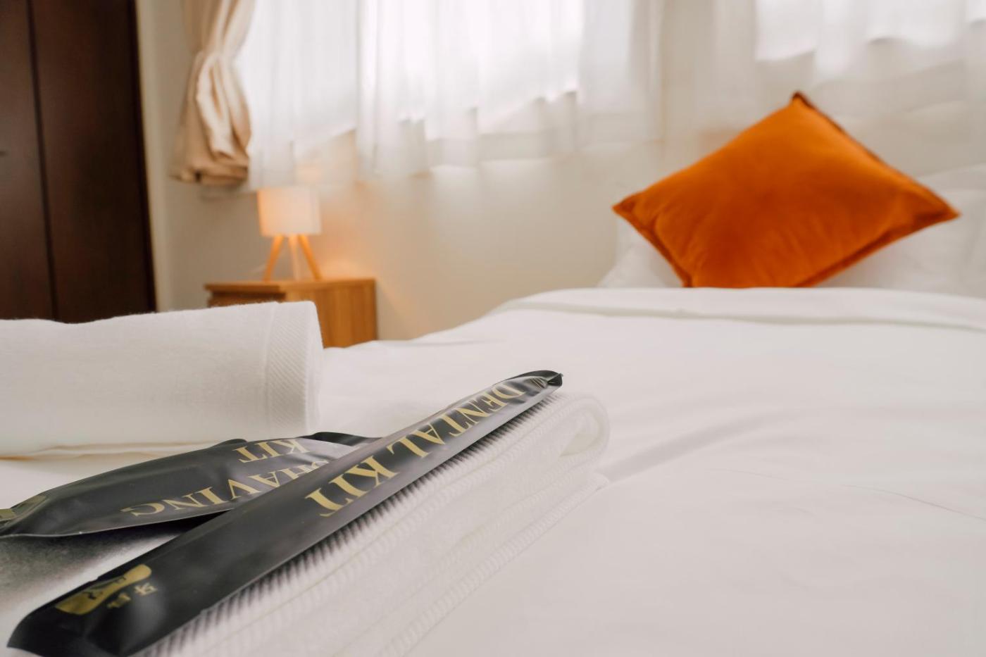 Two-Bedroom Apartment. The hot tub and fireplace are the special features of this apartment. This spacious apartment consists of 1 living room, 2 separate bedrooms and 1 bathroom with a walk-in shower and free toiletries. In the well-equipped kitchen, guests will find a stovetop, a refrigerator, kitchenware and a microwave. The unit is equipped with tatami floors, a seating area, air conditioning, a washing machine, as well as a balcony. The unit offers 3 beds and 4 futons.