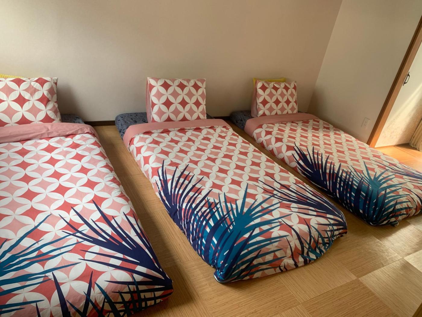 Two-Bedroom House. This holiday home offers a hot tub. Boasting a private entrance, this air-conditioned holiday home features 1 living room, 2 separate bedrooms and 1 bathroom with a walk-in shower and a bath. The fully equipped kitchen has a stovetop, a refrigerator, kitchenware and an oven. Featuring a terrace, this holiday home also features a washing machine, tatami and a flat-screen TV. The unit has 2 beds and 3 futons.