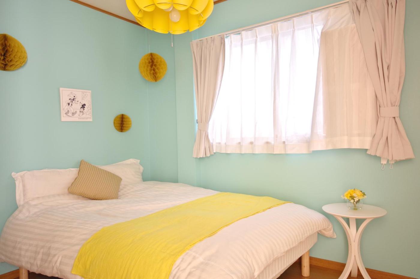 Four-Bedroom House. This apartment has a dining area, private pool and microwave. The apartment features a living room and dining area on the 2nd floor, and a Japanese-style room on the ground floor with Japanese futon bedding. There are 3 rooms on the 3rd floor that feature a total of 4 double beds.