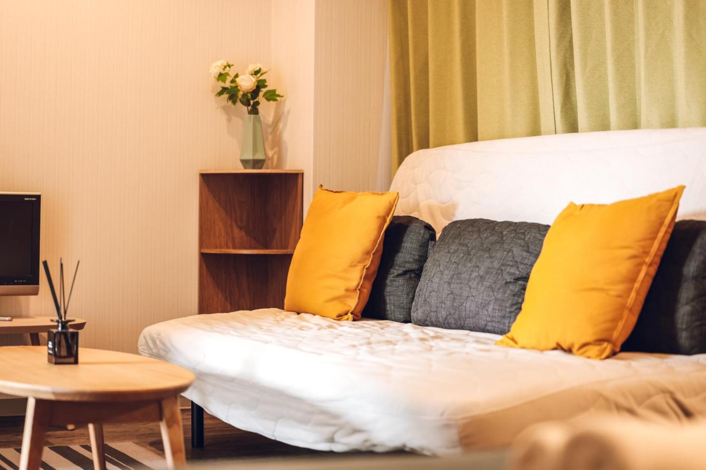 Double Room with Extra Bed. Guests can make meals in the kitchenette that is fitted with a stovetop, a refrigerator, kitchenware and a microwave. The spacious double room offers air conditioning, a washing machine, as well as a private bathroom featuring a bath and a shower. ;