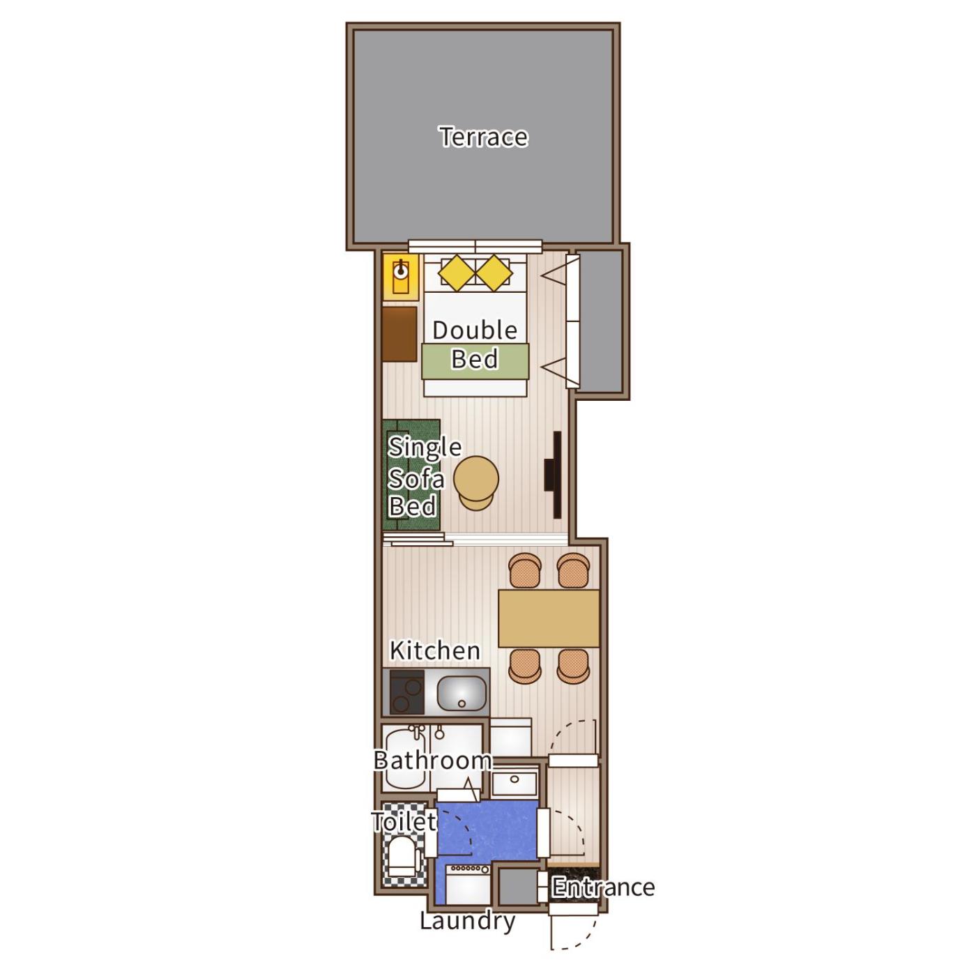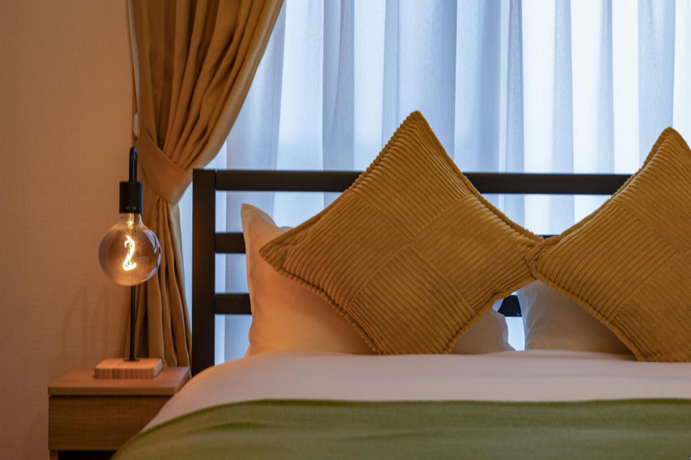 One-Bedroom Apartment. Boasting a private entrance, this air-conditioned apartment features a kitchen, 1 bedroom and 1 bathroom with a bath and a shower. Guests can make meals in the kitchen that has a stovetop, a refrigerator, kitchenware and a microwave. Featuring a balcony, this apartment also features a washing machine, a coffee machine and a flat-screen TV. The unit has 2 beds.