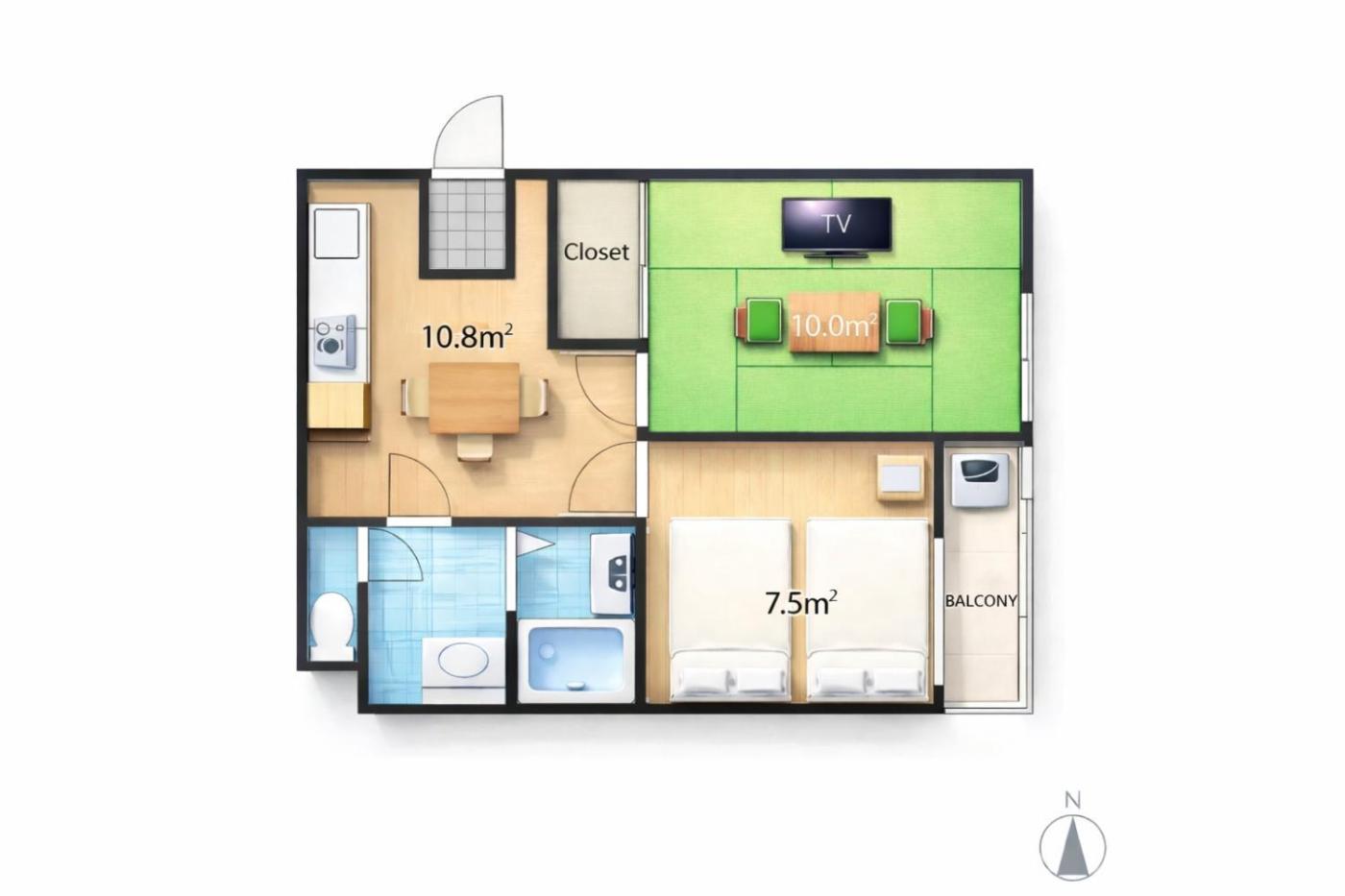 One-Bedroom Apartment. This apartments special feature is the hot tub. Featuring a private entrance, this air-conditioned apartment comprises a kitchen, 1 bedroom and 1 bathroom with a bath and a shower. Meals can be prepared in the kitchen, which is equipped with a refrigerator, a microwave and a tea and coffee maker. This apartment features a washing machine, tatami, a flat-screen TV with streaming services and a balcony. The unit offers 1 bed.