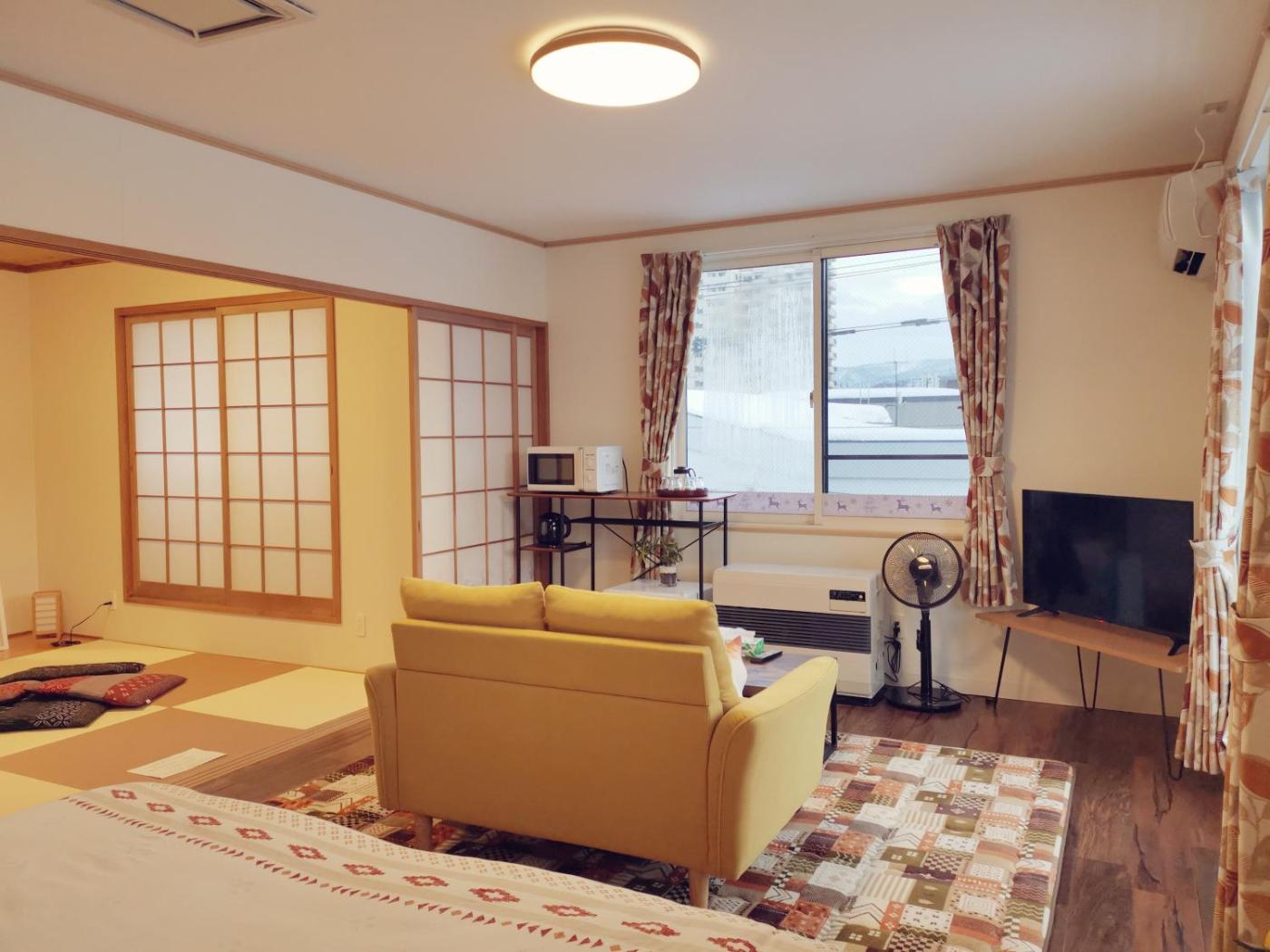 Apartment with Mountain View. Featuring a private entrance, this spacious apartment also is comprised of 3 bedrooms, a seating area and 2 bathrooms with a walk-in shower and a hairdryer. The air-conditioned apartment offers a flat-screen TV with cable channels, tatami, a tea and coffee maker, a wardrobe as well as mountain views. The unit offers 3 beds and 2 futons.