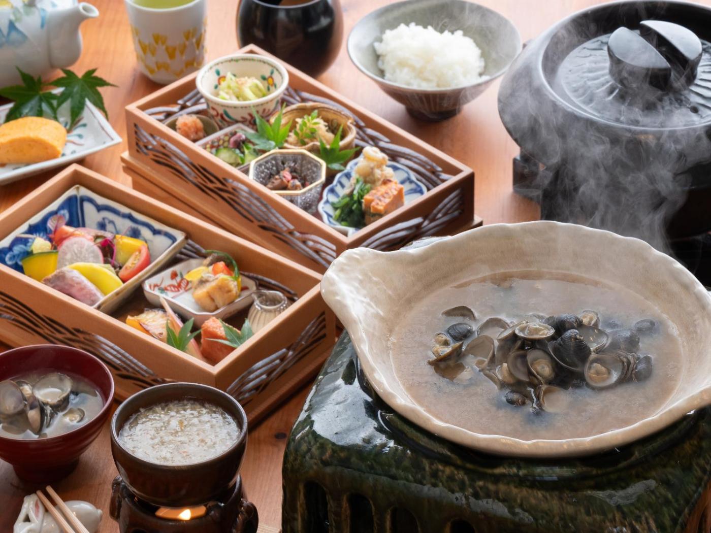 An Asian breakfast is available at 和オーベルジュ 神等楽来 -Kararako-.