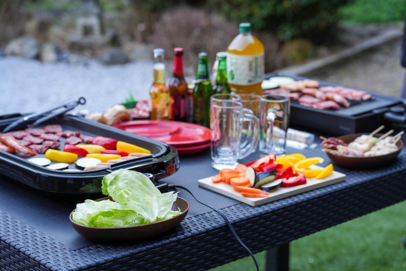 Three-Bedroom Apartment. Guests will have a special experience as the apartment offers a hot tub. Featuring 2 bedrooms and 1 bathroom with a bath, this spacious apartment offers a well-fitted kitchen and a terrace. Guests will find a refrigerator in the kitchen. The apartment also offers a barbecue. The air-conditioned apartment provides a flat-screen TV with streaming services, a washing machine, a coffee machine, a dining area as well as garden views. The unit has 3 beds and 2 futons.