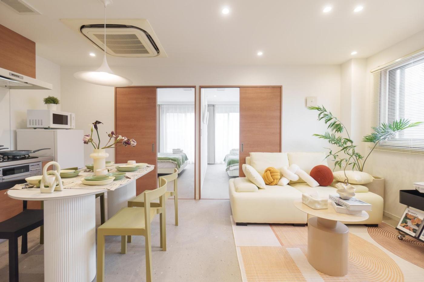 Three-Bedroom Apartment. The air-conditioned apartment has 3 bedrooms, 2 bathrooms and a kitchen. The apartments kitchen is available for cooking and storing food. This apartment features a washing machine, a flat-screen TV and a balcony. The unit has 6 beds. ;