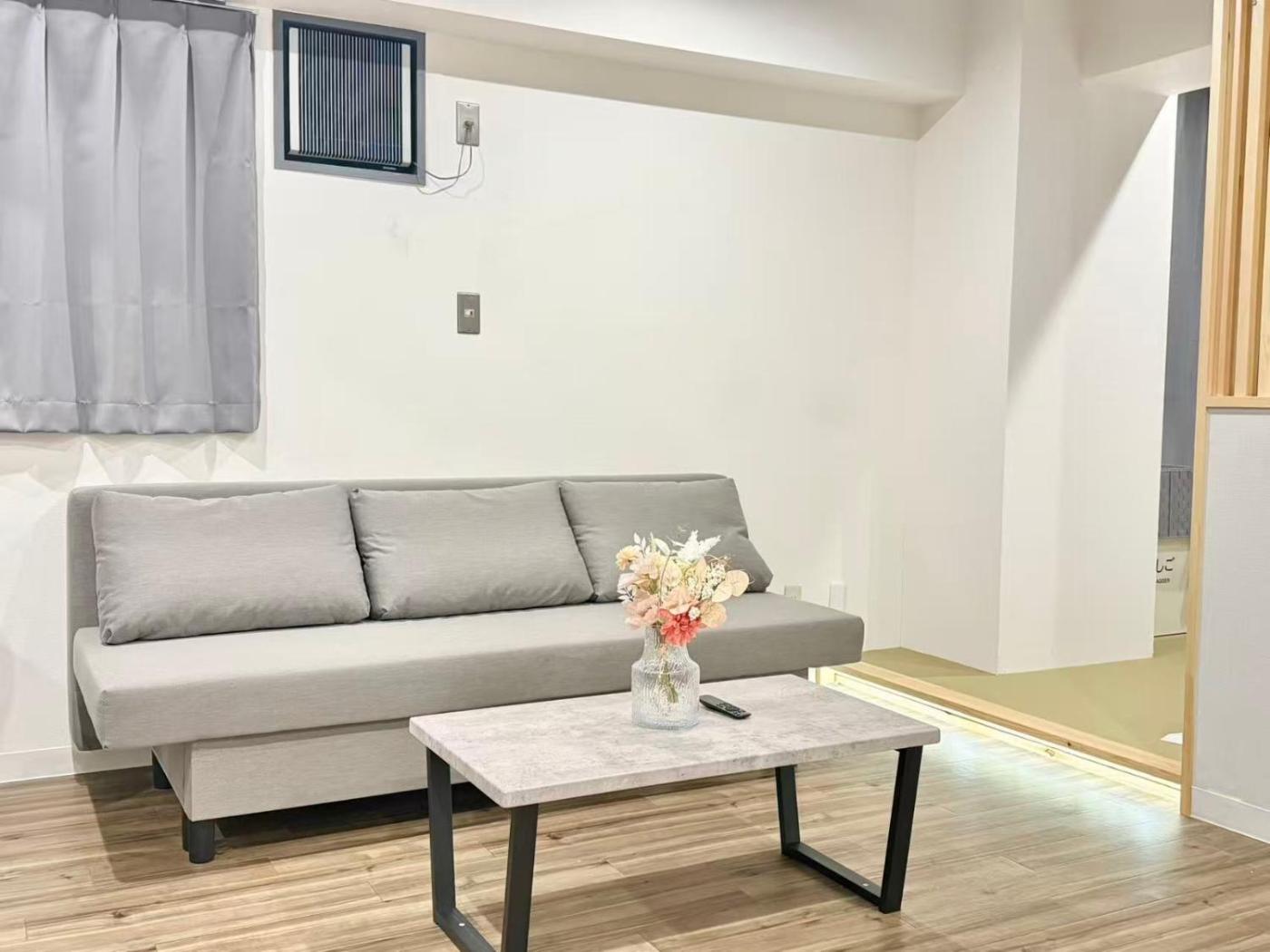 One-Bedroom Apartment. This apartment consists of 1 living room, 1 separate bedroom and 1 bathroom with a shower and free toiletries. In the well-equipped kitchen, guests will find a refrigerator, kitchenware, a microwave and an electric kettle. The apartment features tatami floors and provides air conditioning, a washing machine and a dining area. The unit offers 3 beds.