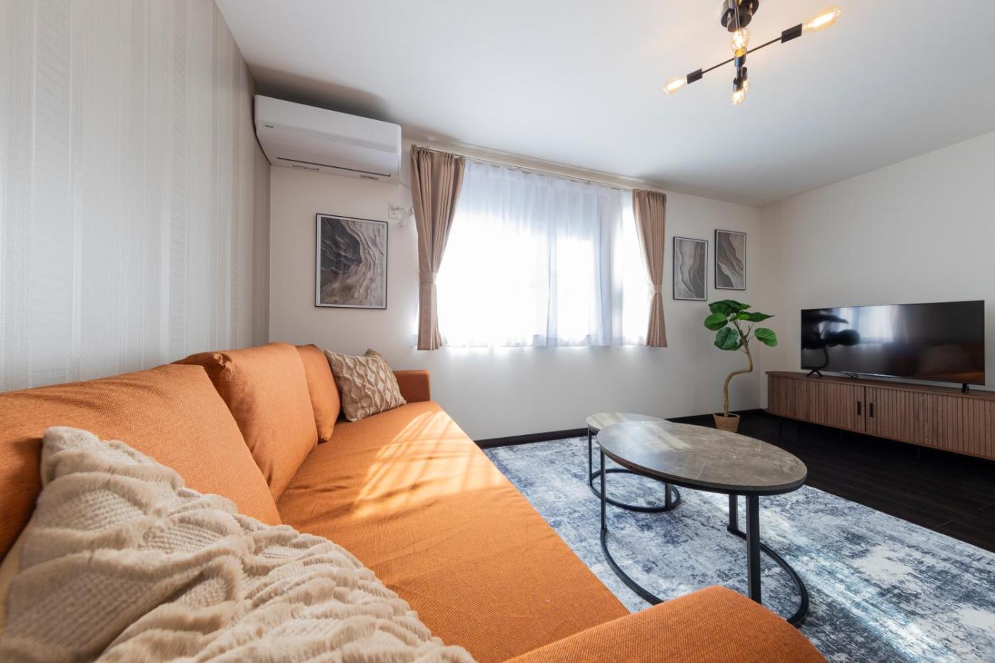 Four-Bedroom Apartment. Boasting a private entrance, this air-conditioned apartment comes with 1 living room, 4 separate bedrooms and 1 bathroom with a bath and a shower. In the well-fitted kitchen, guests will find a stovetop, a refrigerator, kitchenware and a microwave. The spacious apartment features a washing machine, a dining area, a wardrobe, an electric kettle, as well as a flat-screen TV with streaming services. The unit has 8 beds.