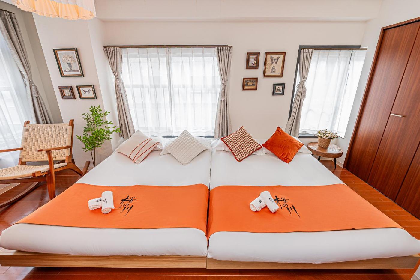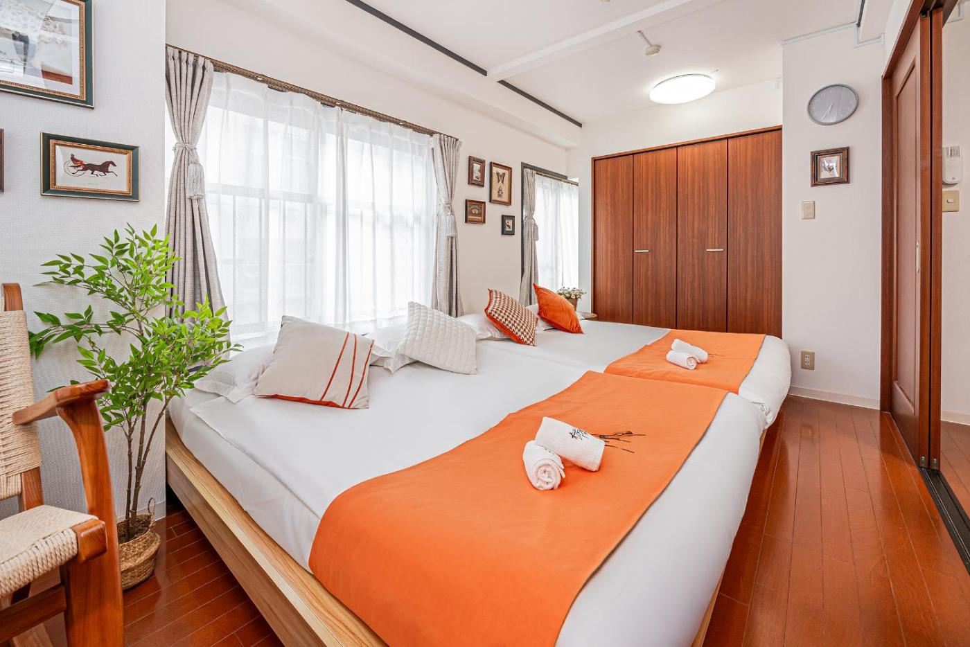 One-Bedroom Apartment. Featuring a private entrance, this air-conditioned apartment consists of 1 living room, 1 separate bedroom and 1 bathroom with a bath and a shower. Guests can make meals in the fully equipped kitchen that features a refrigerator, a microwave and an electric kettle. The apartment provides a TV, a washing machine, tatami, soundproof walls as well as a quiet street view. The unit offers 2 beds.