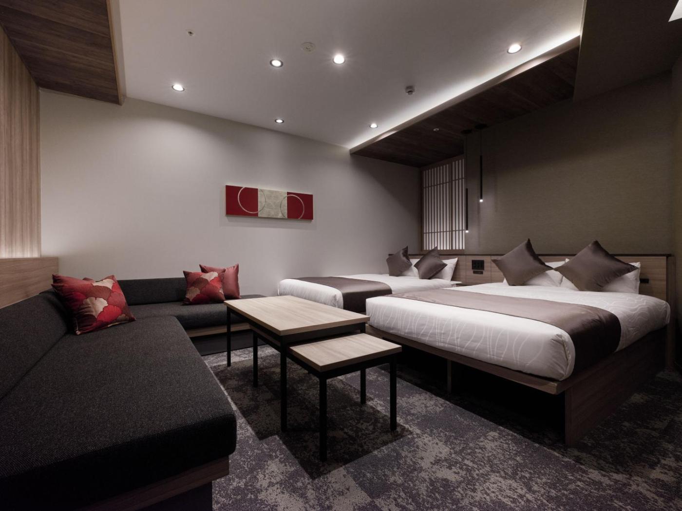 Grand Suite Room with Washing Machine. The air-conditioned suite has 1 bedroom and 1 bathroom with a bath and a shower. In the kitchenette, guests will find a refrigerator, kitchenware and a microwave. The suite offers a washing machine, a dining area, a safe deposit box, an electric kettle, as well as a flat-screen TV with streaming services. The unit has 4 beds. ;