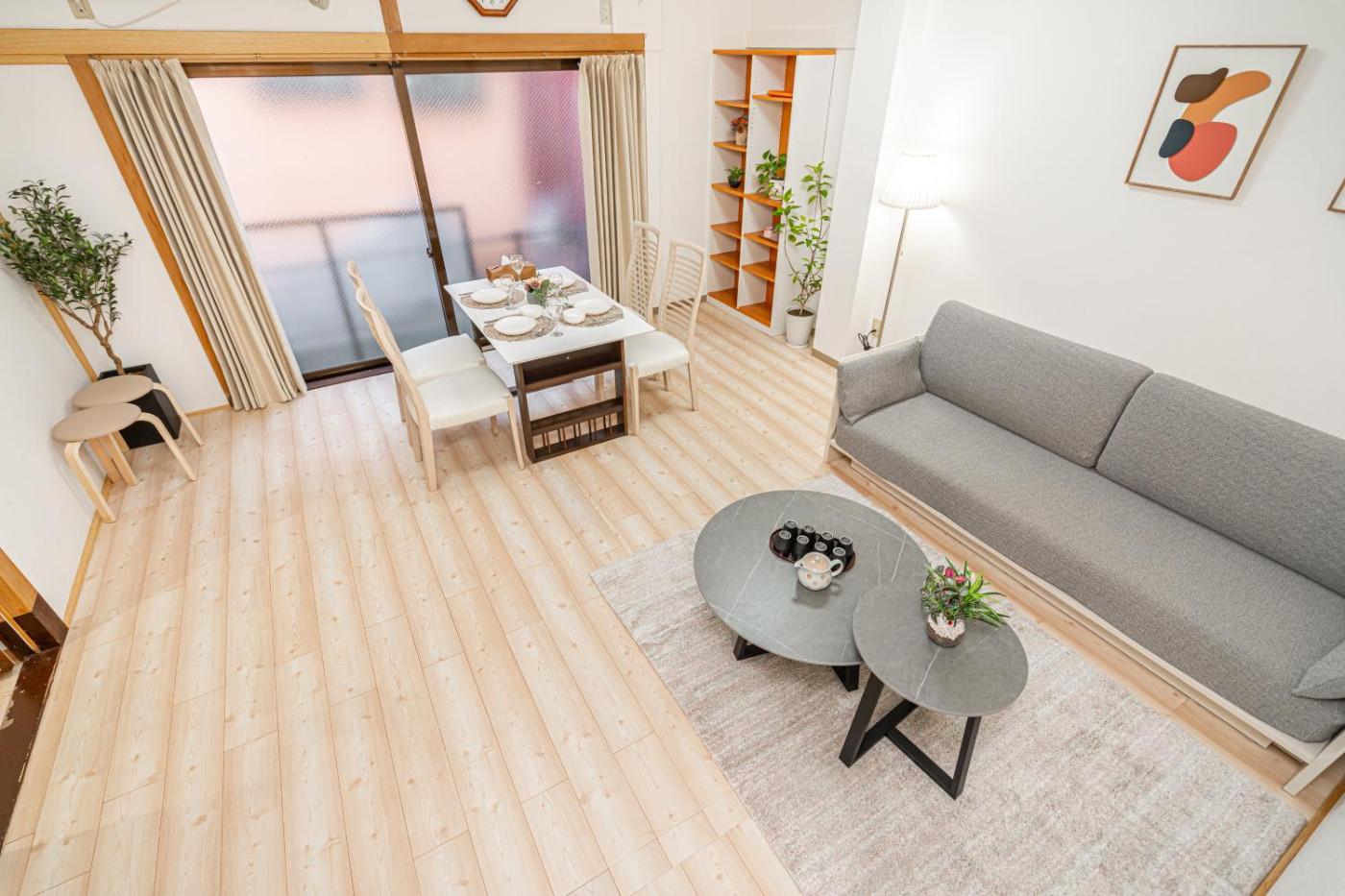 Four-Bedroom House. Featuring a private entrance, this air-conditioned holiday home comprises 1 living room, 4 separate bedrooms and 2 bathrooms with a shower and a hairdryer. Meals can be prepared in the well-fitted kitchen, which comes with a stovetop, a refrigerator, a microwave and an electric kettle. The holiday home provides a washing machine, tatami, as well as a terrace and a balcony. The unit offers 3 beds and 5 futons.