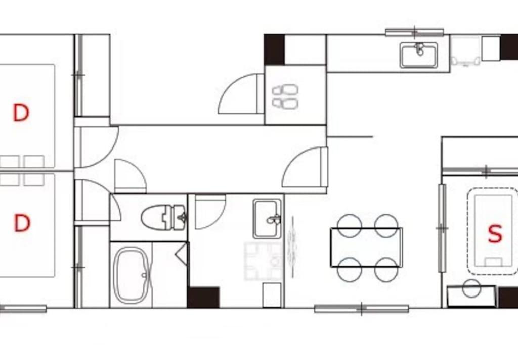 Three-Bedroom Apartment. The spacious apartment has 3 bedrooms and 1 bathroom with a bath and free toiletries. In the well-equipped kitchen, guests will find a stovetop, a refrigerator, kitchenware and a microwave. The apartment features air conditioning, a washing machine, a tea and coffee maker, a dining area and a flat-screen TV. The unit has 5 beds and 1 futon.